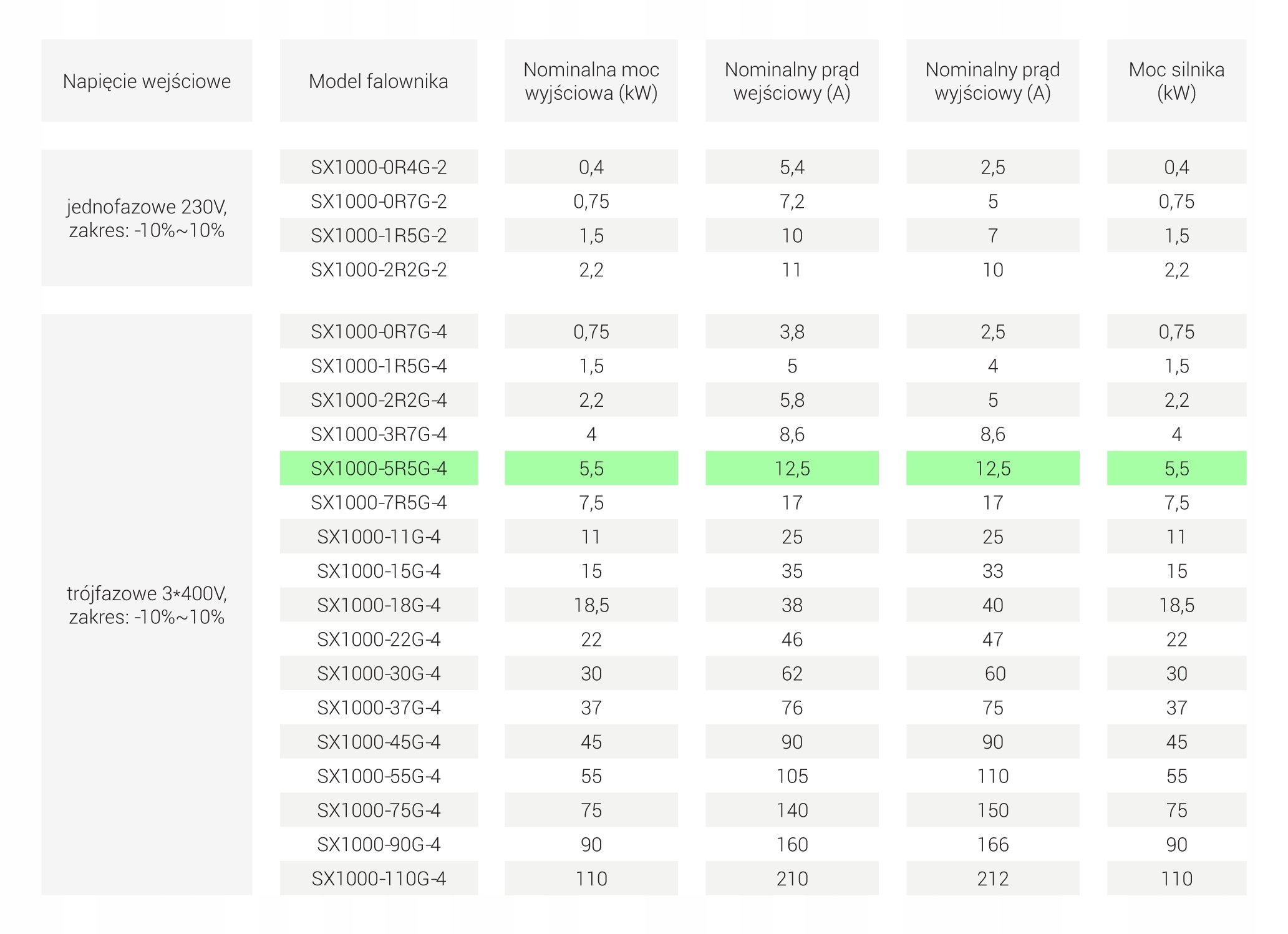 - вхідна потужність: 3 x 400В (3-фазний 400В)