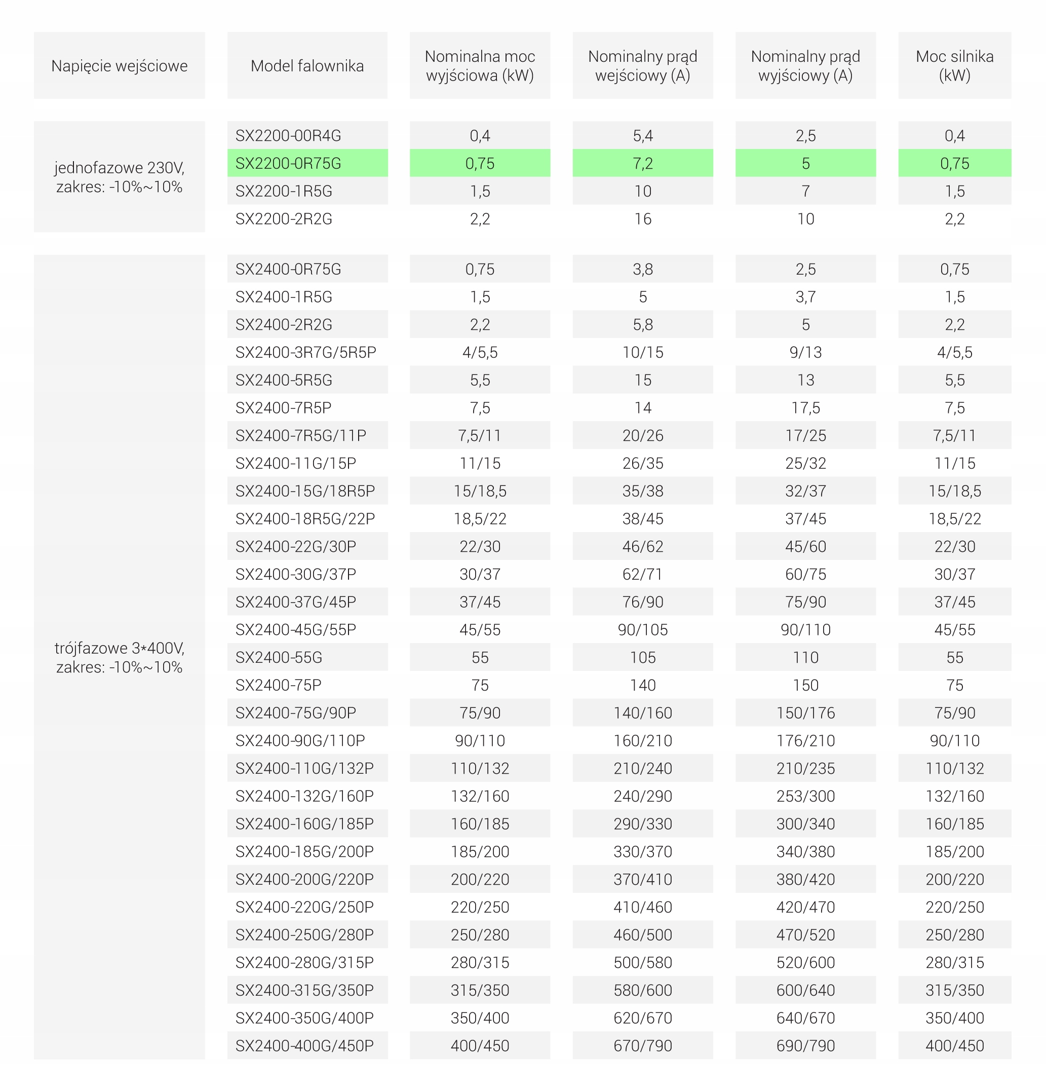 - вхідна потужність: 1 x 230 В (1-фазна 230 В)
