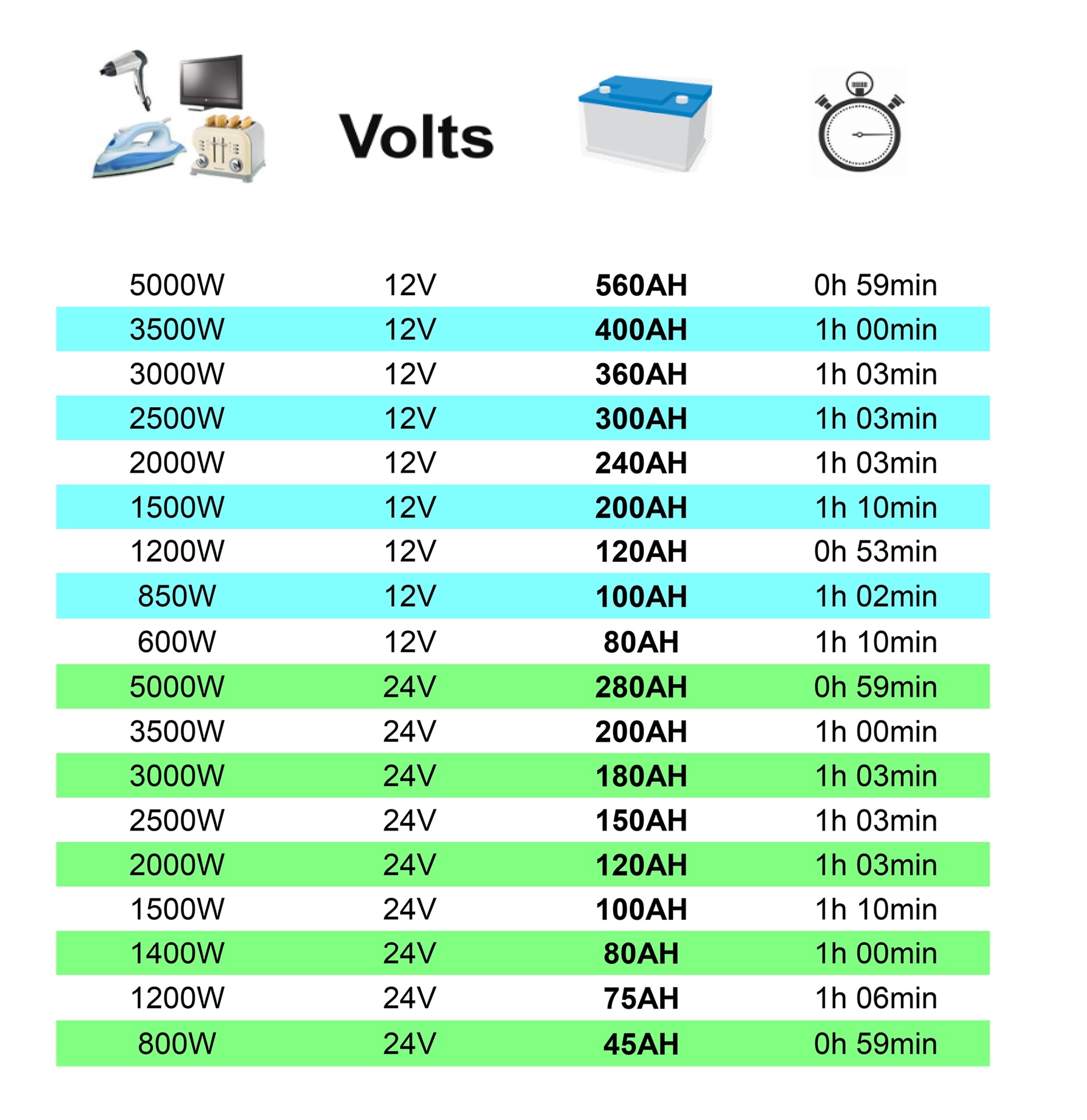 У таблиці нижче показано час, протягом якого можна використовувати електричні пристрої залежно від їх потужності та ємності батареї.