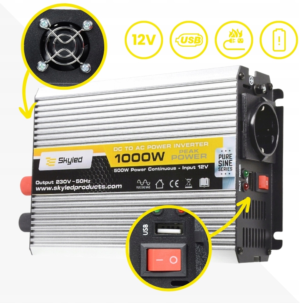 ІНВЕРТОР SKYLED 1000W FULL SINE 12V 230V USB