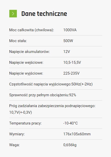 Електронний перетворювач IPS 500/1000 12V використовується для живлення електричних пристроїв, що вимагають змінної напруги 230V від акумуляторів і автомобільних установок з постійною напругою 12V. Він ідеально підходить для транспортних засобів і місць, де немає можливості прямого підключення до електромережі.
