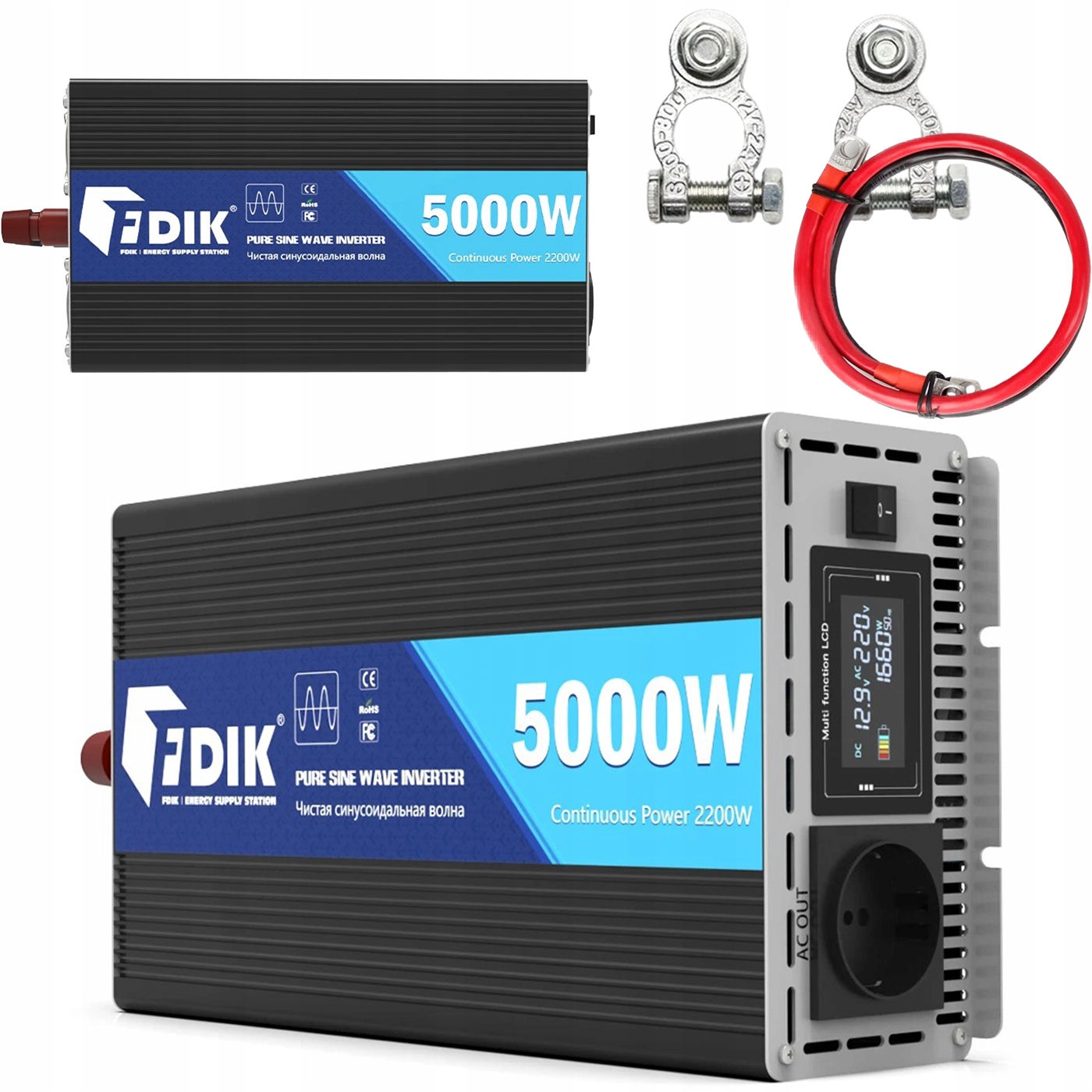 ІНВЕРТОРНИЙ ІНВЕРТОР 5000ВТ 12В або 24В ЧИСТА СИНУСОЇДА ПОСТІЙНОГО СТРУМУ ЗМІННОГО СТРУМУ 230В LCD