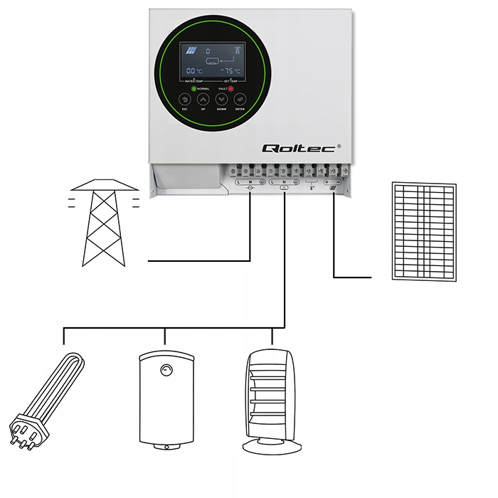 ✅ Qoltec інверторний сонячний перетворювач 4 кВт для нагрівальної води | Еко -сонячне підсилення | MPPT BYPASS LCD