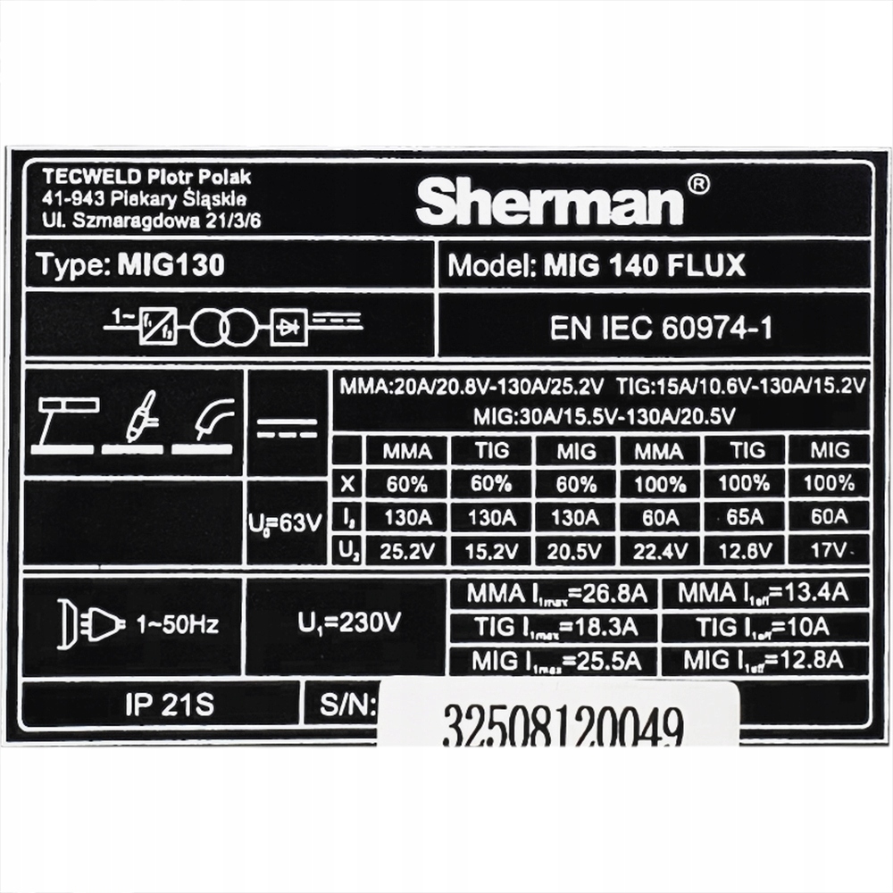 - Макс. споживання струму MIG/MAG [A]: 25,5