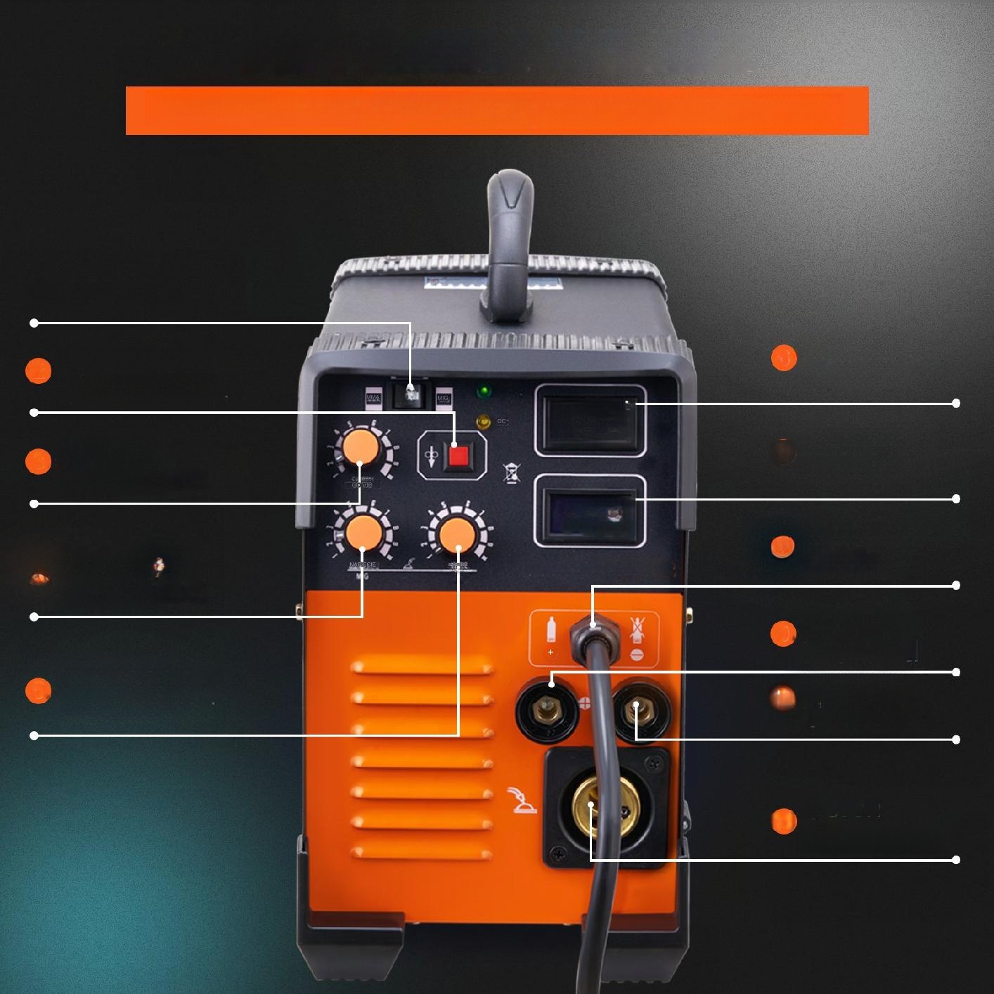 - ✅ Інтуїтивно зрозуміла панель управління - легке перемикання режимів MIG/MMA/TIG, регулювання швидкості дроту та параметрів зварювання.