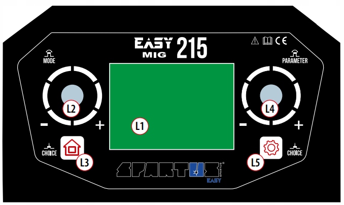 SPARTUS EASYMIG 215 має зрозумілу та легку у використанні функціональну панель, яка, серед іншого, має: