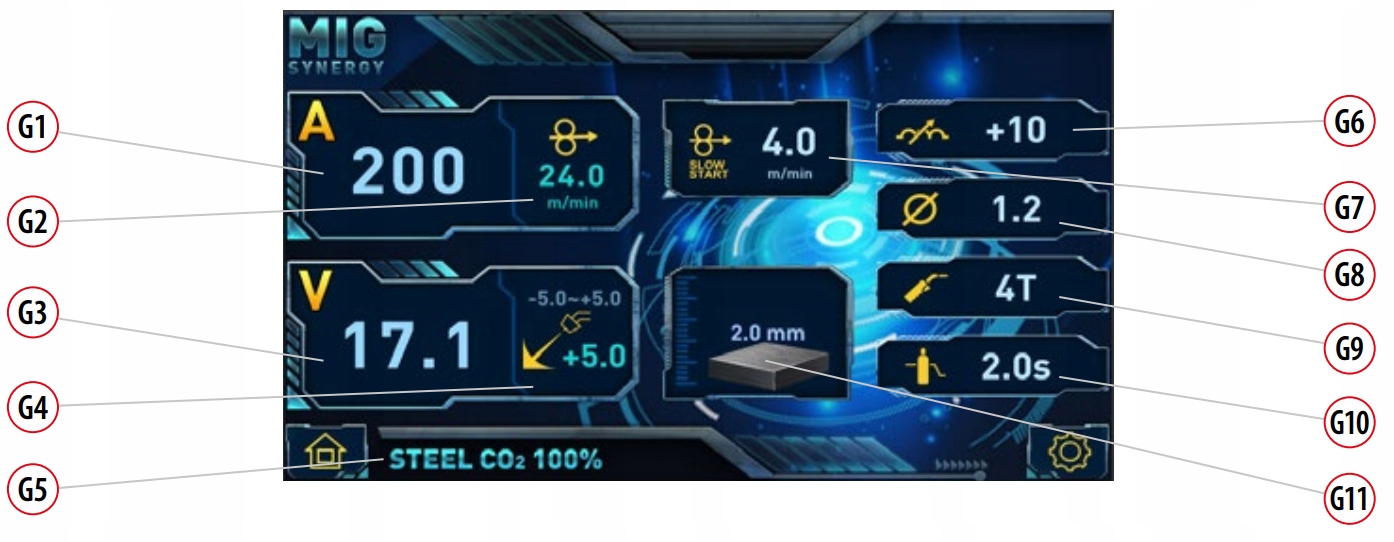 - MIG SYN - MIG/MAG зварювання з налаштуваннями synergic,