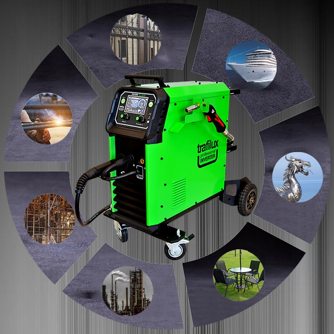 Migomat від TRAFILUX - це прилад із широким спектром застосування, розроблений як інверторне джерело живлення можливість зварювання плавким дротом у MIG/MAG або FCAW газовому екрані, самоекранованим дротом (після зміни полярності), зварювання електродом MMA , а також метод TIG Lift.