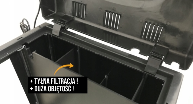 Вода в акваріумі фільтрується за допомогою камерної фільтрації. Він містить загалом ЧОТИРИ камери ємністю 15 л, для яких у наборі готується загалом чотири фільтруючі матеріали (проте ми рекомендуємо придбати високопористий носій, такий як Seachem Matrix). У поєднанні з керамічними кільцями, біомолітом, матами та активованим вугіллям, які входять у комплект, ви отримаєте чудову фільтрацію! Крім того, камери приховані за задньою стінкою акваріума, тому не порушують природний вигляд акваріума. Після фільтрації вода закачується назад в акваріум.