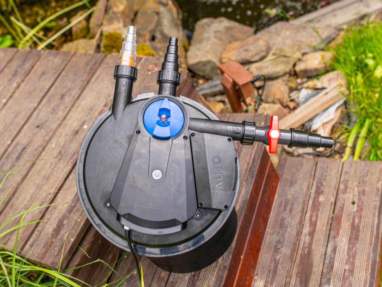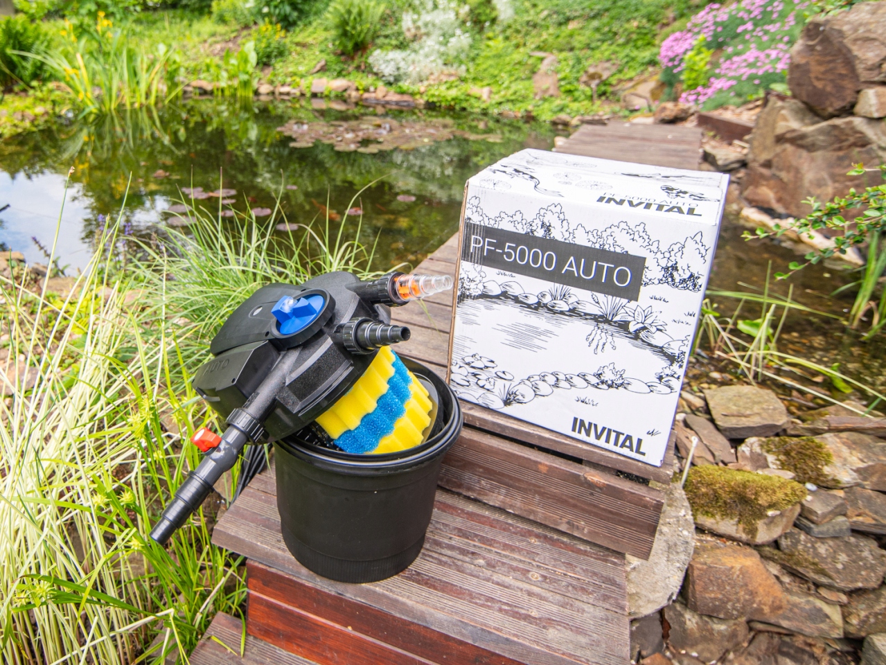 Фільтр під тиском 15000 автоматично з УФ На відміну від класичних біологічних фільтрів, фільтри тиску повністю закриті, що забезпечує більшу безпеку використання - вони не загрожують перенапруженням навіть при безперервній роботі. Їх конструкція також дозволяє встановити нижче рівня дзеркала води. Фільтрація в цьому типі пристроїв однаково ефективна і часто навіть ефективніша, ніж у традиційних біологічних фільтрах, незважаючи на менший об'єм. Крім того, фільтри Invitital тиску оснащені інтегрованою УФ -лампою, яка ефективно бореться з водоростями та паразитарними збудниками.