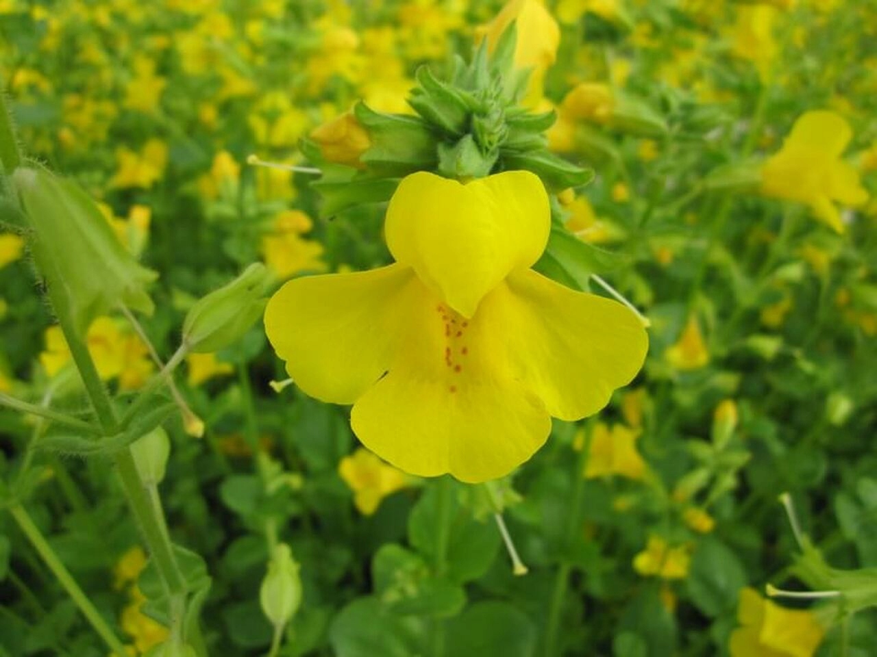 Середня вимоглива грязьова рослина для використання у стоячих водах, жовтому суцвіття. Цей завод, що походить з Північної Америки, стало популярним доповненням до садових ставок. Mimulus luteus підходить для середніх і великих суглобів, і його коріння можна постійно занурювати (до глибини 10 см). Він цвіте від червня до вересня з ефективними жовтими квітами. Доросла рослина охоплює площу від 30 до 50 см.