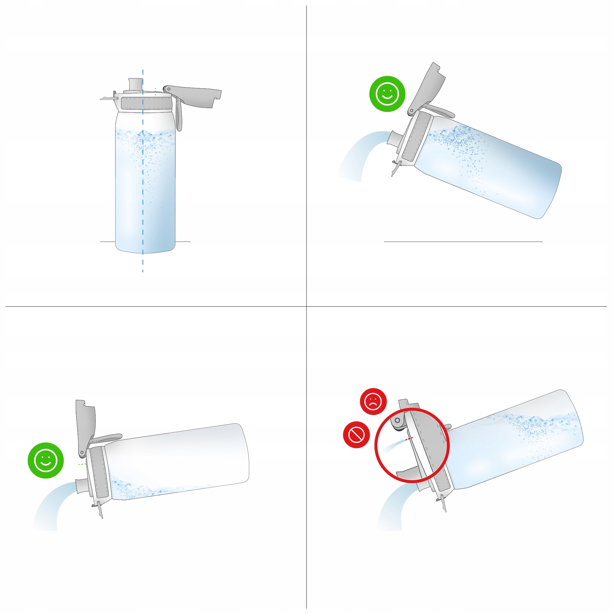 ⚠️ Ніколи не нахиляйте пляшку надмірно