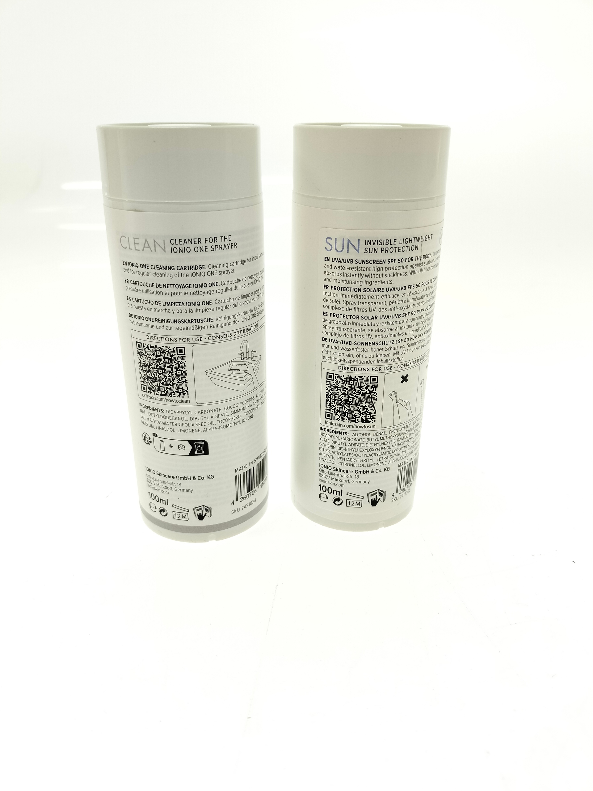 IONIQ SKINCARE SPRAYER & CLEAN 100ML & SUN SPF 50 100 ml