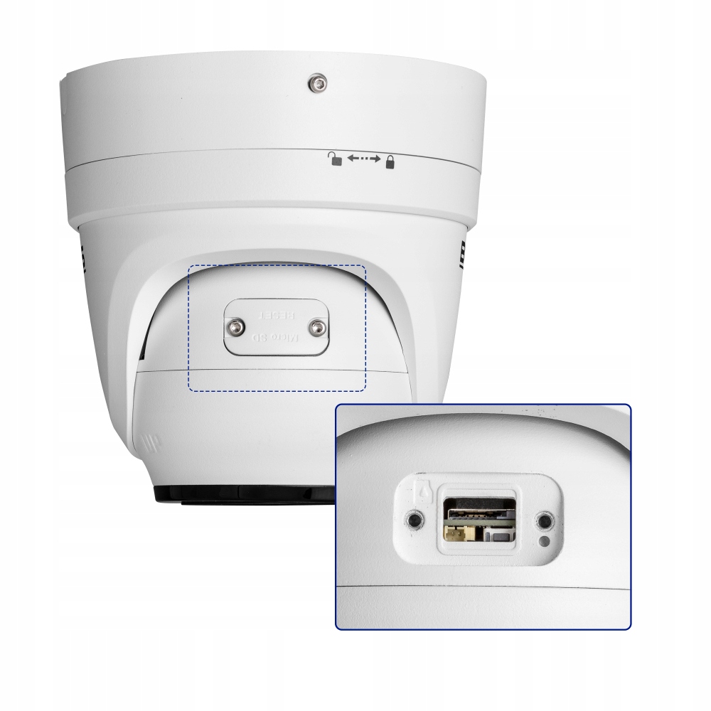 8mpx допінг-камера з об'єктивом Motozoom 2,8-12 мм. ІЧ -радіатор з діапазоном до 40 м дозволяє камері представити якісне зображення в загальній темряві. Функція WDR (120 дБ) покращує динаміку камери та виводить більше деталей з контрастного плану спостереження, а 3D -функції DNR дозволяють стати статичним або динамічним зменшенням шуму на зображенні та отримання більш високої якості в умовах поганого освітлення. Весь був укладений у герметичний корпус IP66 і працює від напруги 12 В постійного струму або По.