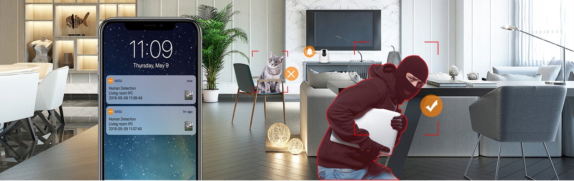 - Функція виявлення людей дозволяє автоматично виявляти людську фігуру, а функція інтелектуального відстеження стежитиме за рухомим об’єктом і негайно надсилатиме сповіщення на ваш смартфон.