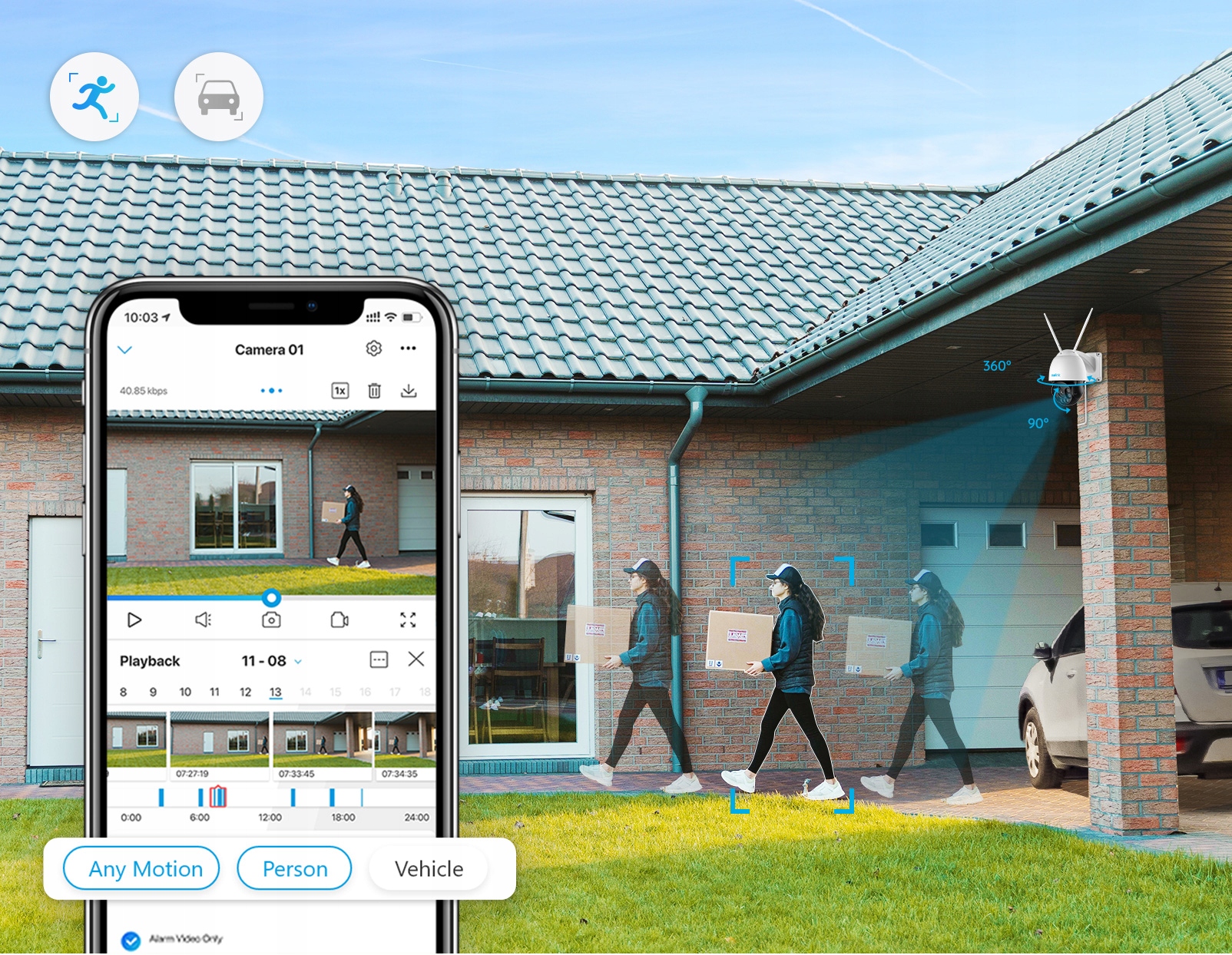 Визначте реальні загрози. Завдяки інтелектуальній технології виявлення руху. Ця камера може відрізняти людей і транспортні засоби від інших об’єктів.