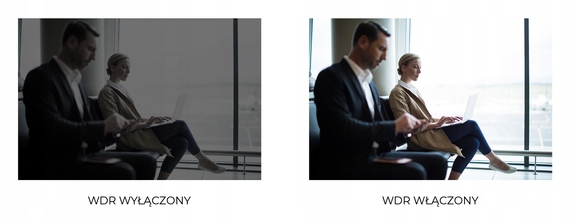 Функція WDR 120 дБ покращує відтворення сцени у разі великих відмінностей у рівні освітлення різних її частин. Типовими застосуваннями цієї функції є скляні проходи, входи в будівлі тощо. Ця технологія чудово справляється із записом зображень за наявності високих світлових контрастів, які часто можуть порушити правильну роботу камери.