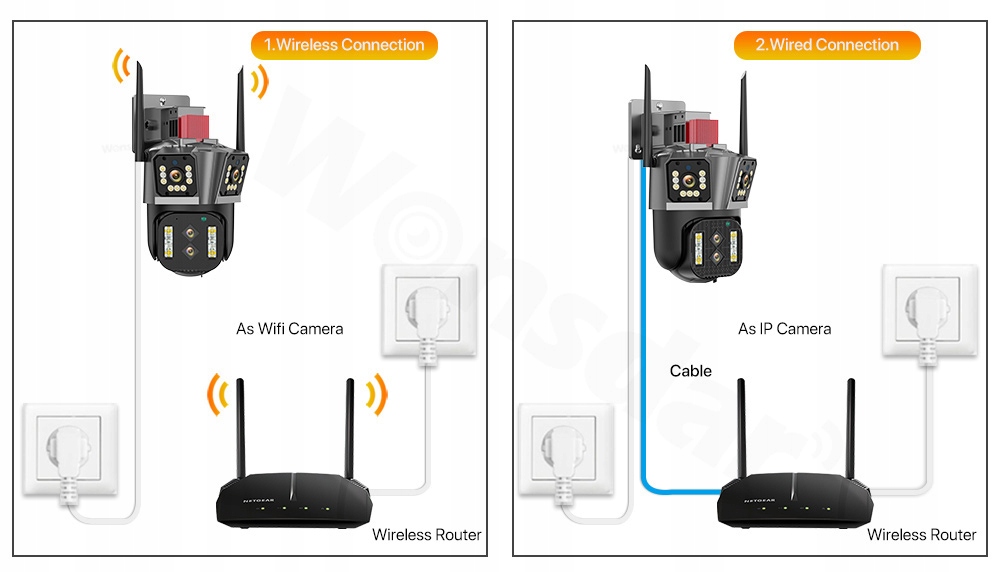 Доступно Єдва способи встановлення:підвішування та кріплення на стіні відповідно до різноманітних потреб і умов навколишнього середовища. Камеру можна легко встановити як на вулиці, так і в приміщенні, забезпечуючи стабільний і надійний захист.