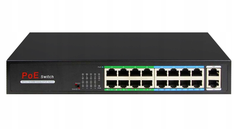 Модель, що входить до комплекту, є універсальним 16-портовим некерованим комутатором, оснащеним 16 портами PoE з максимальною швидкістю 100 Мбіт/с і з підтримкою стандартів IEEE 802.3af/at. Комутатор також має2 порти RJ45 Uplink зі швидкістю 100 Мбіт/с.