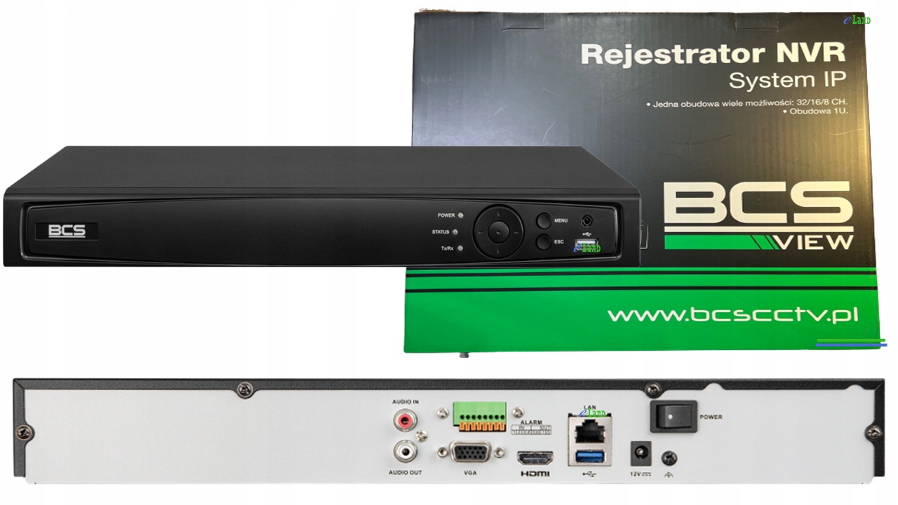 Веб-рекордер BCS VIEW. Він дозволяє відображати та записувати до 8 IP-камер з максимальною роздільною здатністю 12 Мпікс. Запис на 2 диски SATA до 8 ТБ на кожному диску. Має 1 аудіовхід і 1 вихід, 4 входи сигналізації і 1 вихід, порт RJ-45, 2 порти USB і виходи монітора HDMI4K (3840x2160) і VGA (1920x1080), що працюють незалежно. Максимальна вхідна пропускна здатність 80 Мбіт/с, вихідна 256 Мбіт/с. Реєстратор підтримує розширені функції відеодетектора: виявлення руху, перетину лінії, вторгнення в зону.