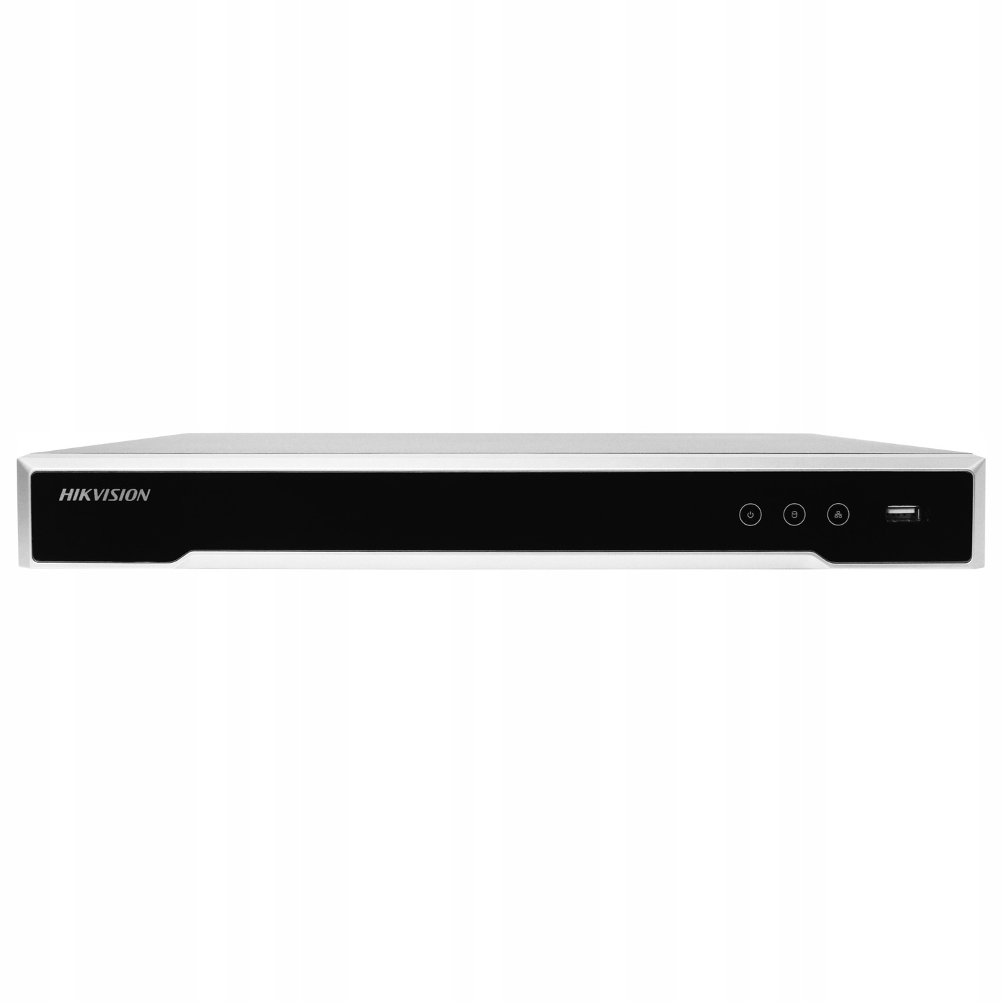 Hikvision NVR, вхідна пропускна здатність: 160 Мбіт/с, вихідна пропускна здатність 80 Мбіт/с, запис із роздільною здатністю 8 Мп, підтримка до 16 IP-камер, відеовихід HDMI і VGA, 2 × USB 2.0, 1 інтерфейс SATA, 1 порт RJ45 Ethernet (1000 Мбіт/с), корпус 1U 315x240x48 мм. Джерело живлення 12 В постійного струму