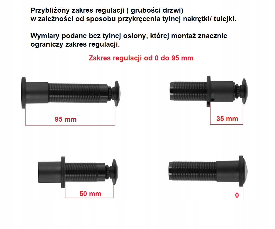 Дверна камера Wi-Fi нового покоління. Пристрій монтується в отвір дверей, де розташований звичайний вічко. Підходить для дверей товщиною від 0 до 95 мм (залежно від того, як загвинчена задня гайка - діапазон наведено без задньої кришки, використання якої значно обмежить регулювання).