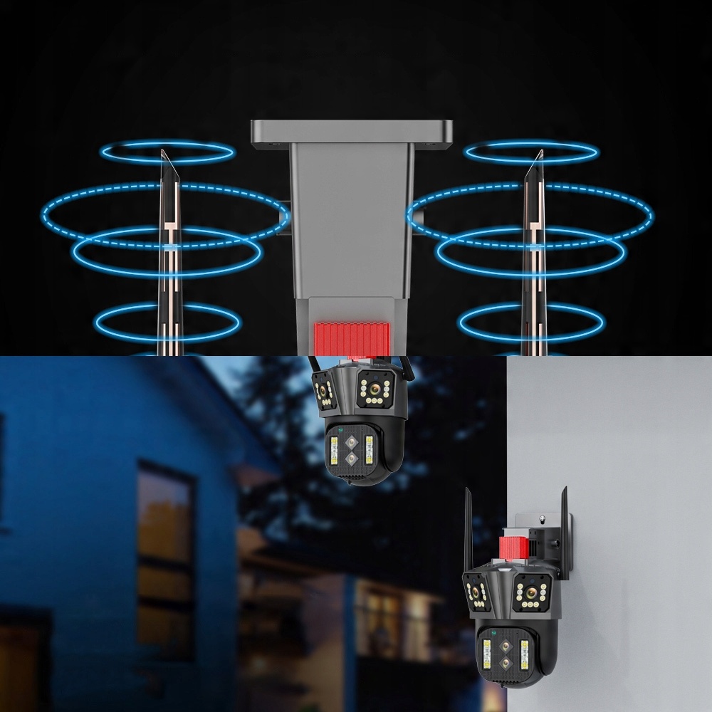 Зовнішня IP-камера 8K оснащена трьома об’єктивами, подвійними датчиками та трьома екранами, що забезпечує ширше поле огляду та фіксує більше деталей. Кожна лінза має 4 мільйони пікселів із загальною роздільною здатністю 8K, що гарантує чітке бачення кожної сцени незалежно від того, день чи ніч.