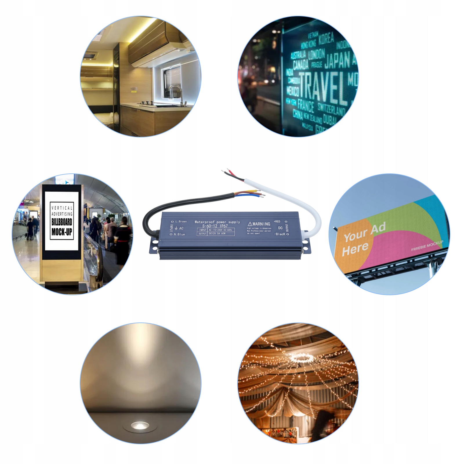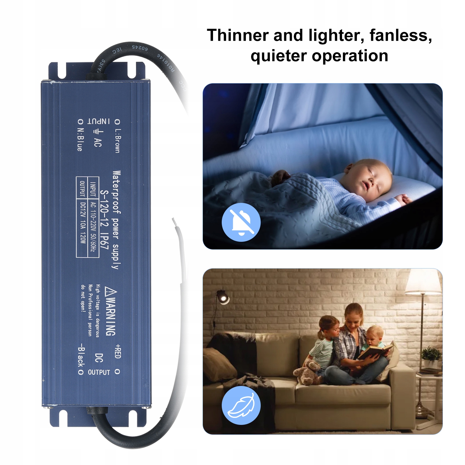 2. Надійна вихідна потужність: з вихідною напругою 12 В і 120 Вт цей блок живлення забезпечує стабільне та ефективне живлення для зовнішніх світлодіодних ліхтарів, вивісок, рекламних дисплеїв, світлових коробів, світлових стрічок тощо.