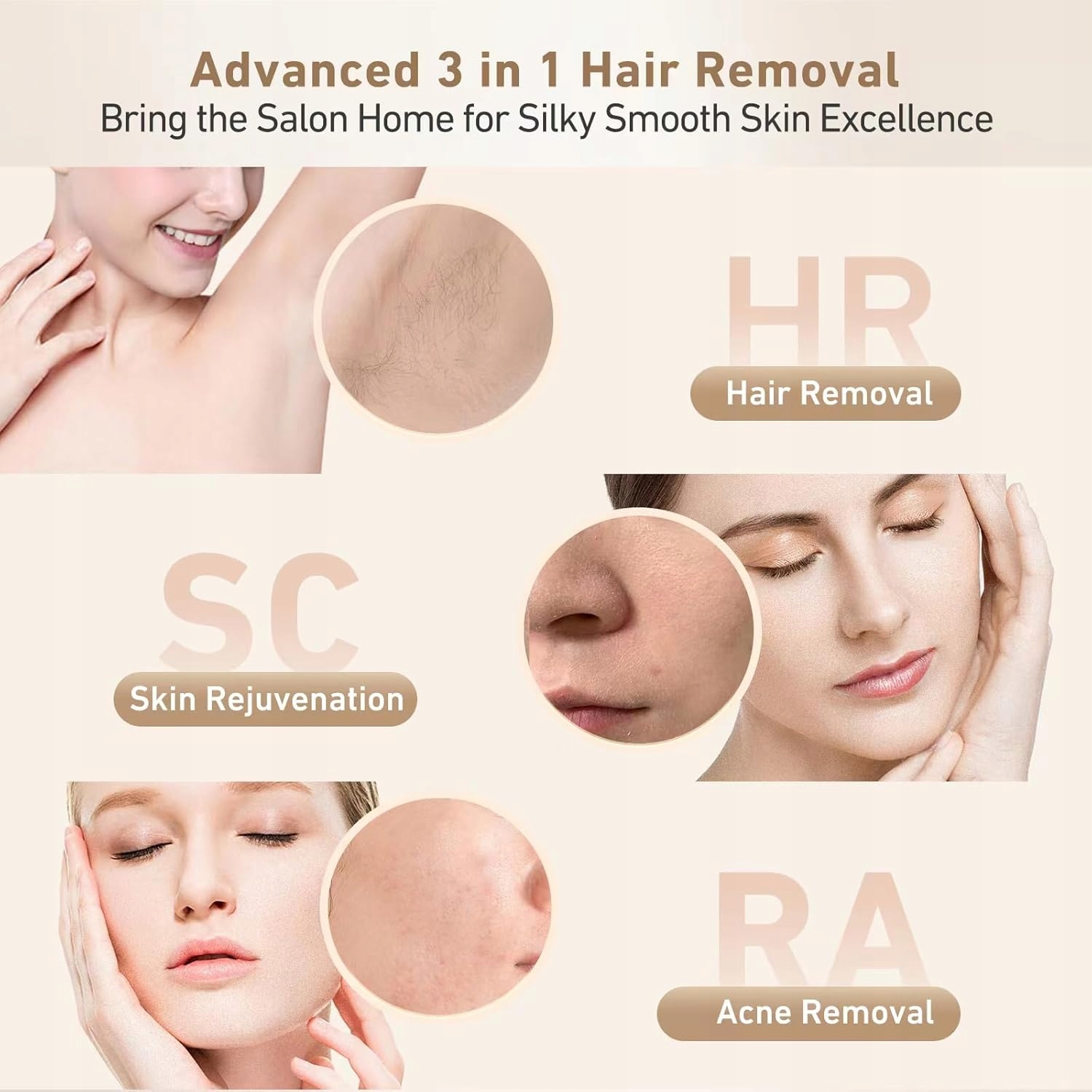 - Технологія IPL - Ефективна депіляція: Цей пристрій депіляції використовує найсучаснішу технологію IPL. Світлі хвилі проникають у шар шкіри, щоб досягти кореня волосся і стимулювати волосяний фолікул, це можна зробити швидко і легко в домашніх умовах. Клінічні результати показали, що швидкість видалення волосся досягає 95% 4 тижнів використання.
