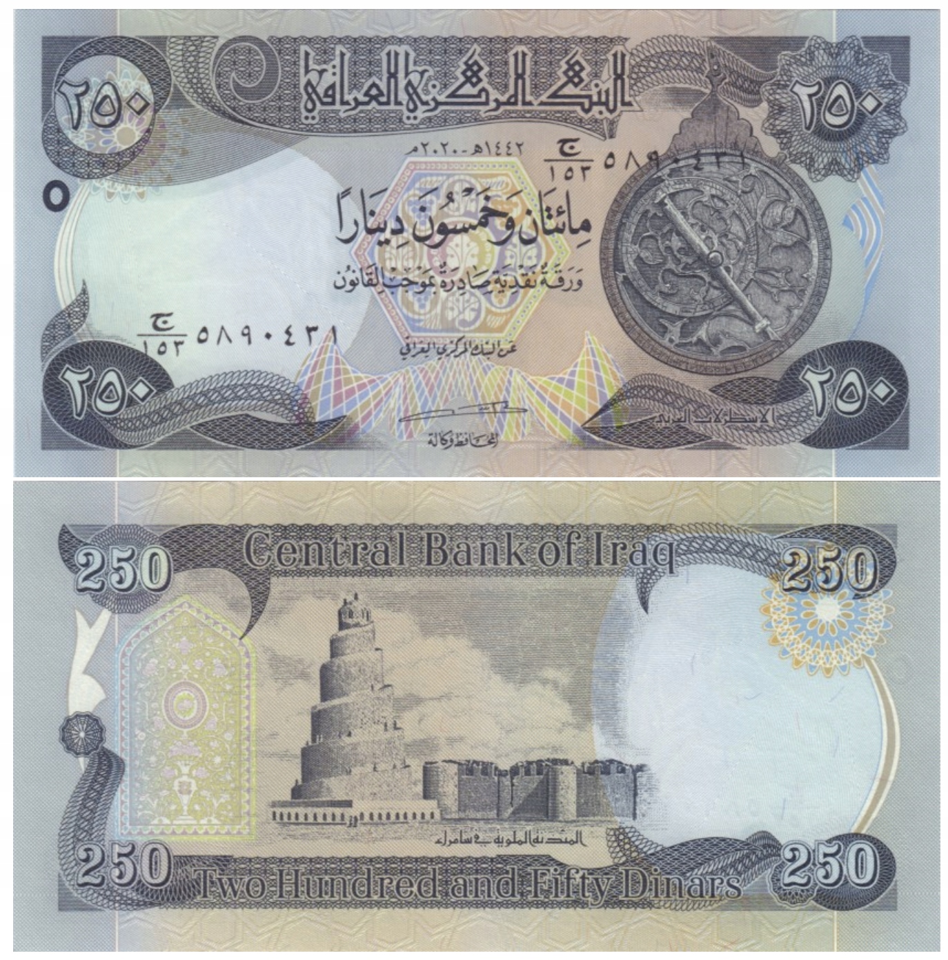 IRAK 250 динарів 2020 P-97c UNC, серійний номер банкноти може відрізнятися від зображеного на фото