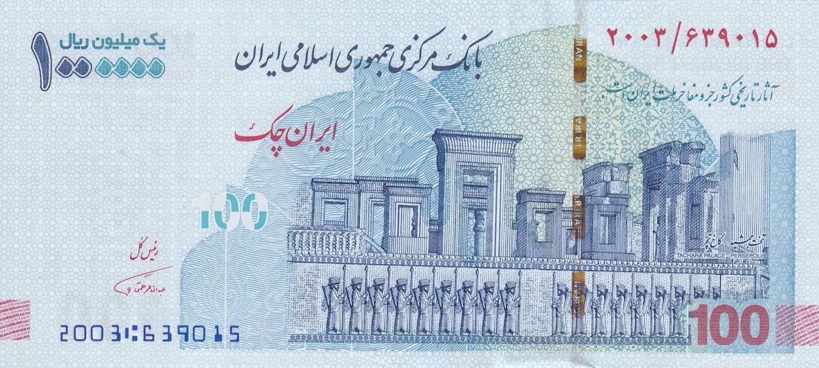 Красива банкнота 100 томанів = 1 000 000 ріалів з Ірану - 2021. в абсолютно ідеальному банківському стані I (UNC).