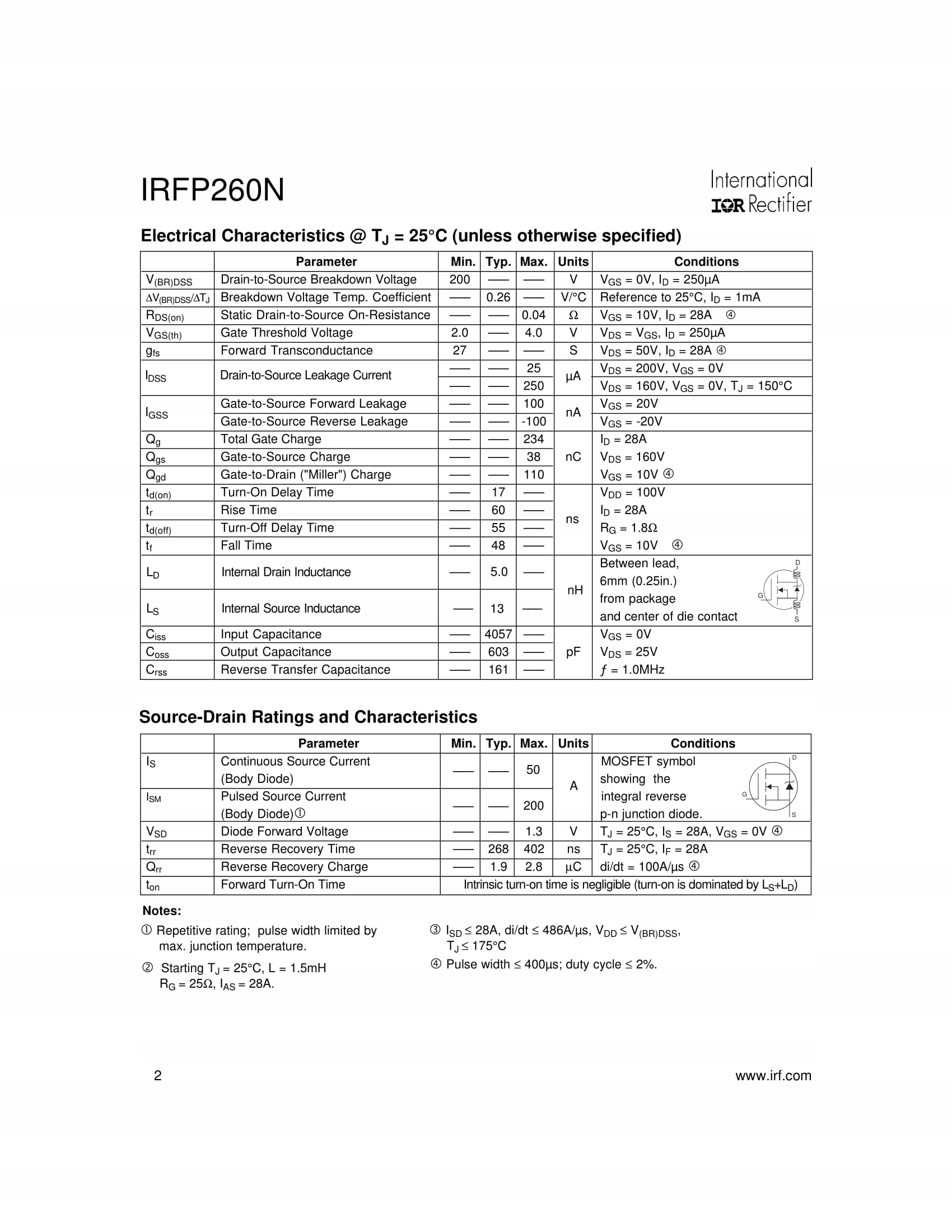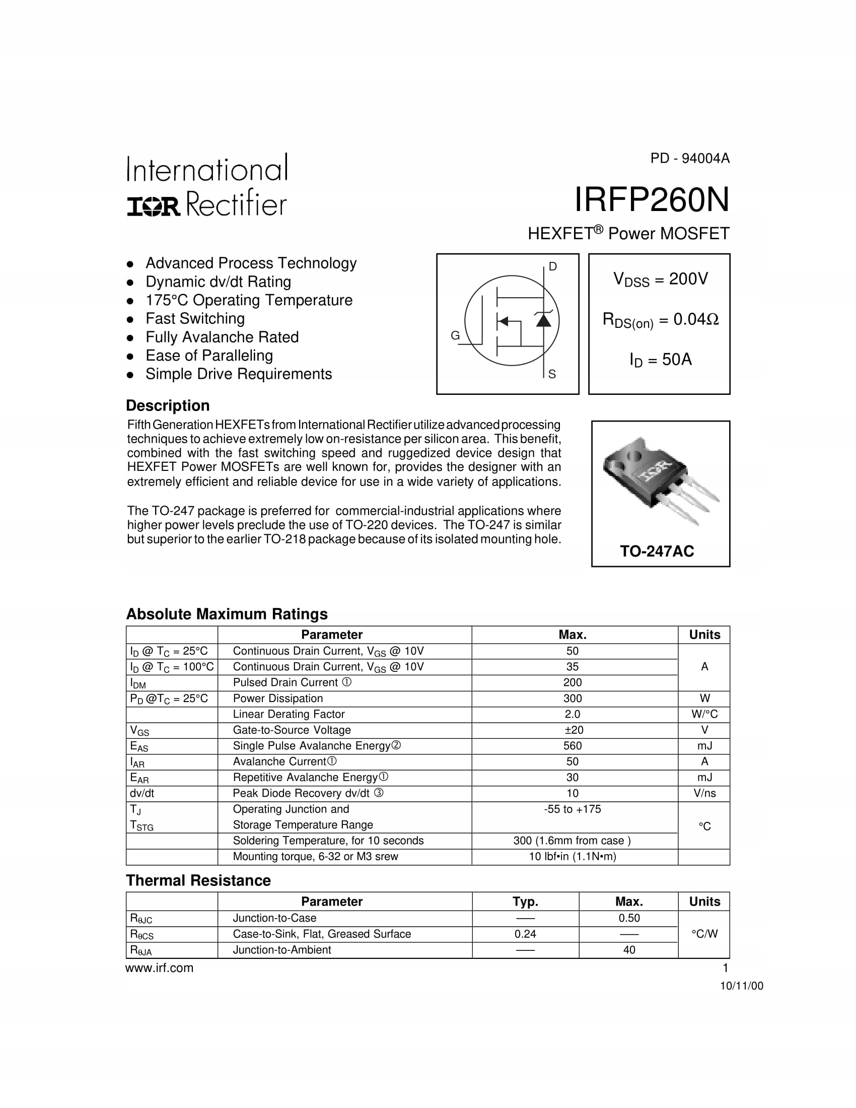 IRFP260NPBF TO-247 - MOSFET - 50A, 200V, 0,04 Ом