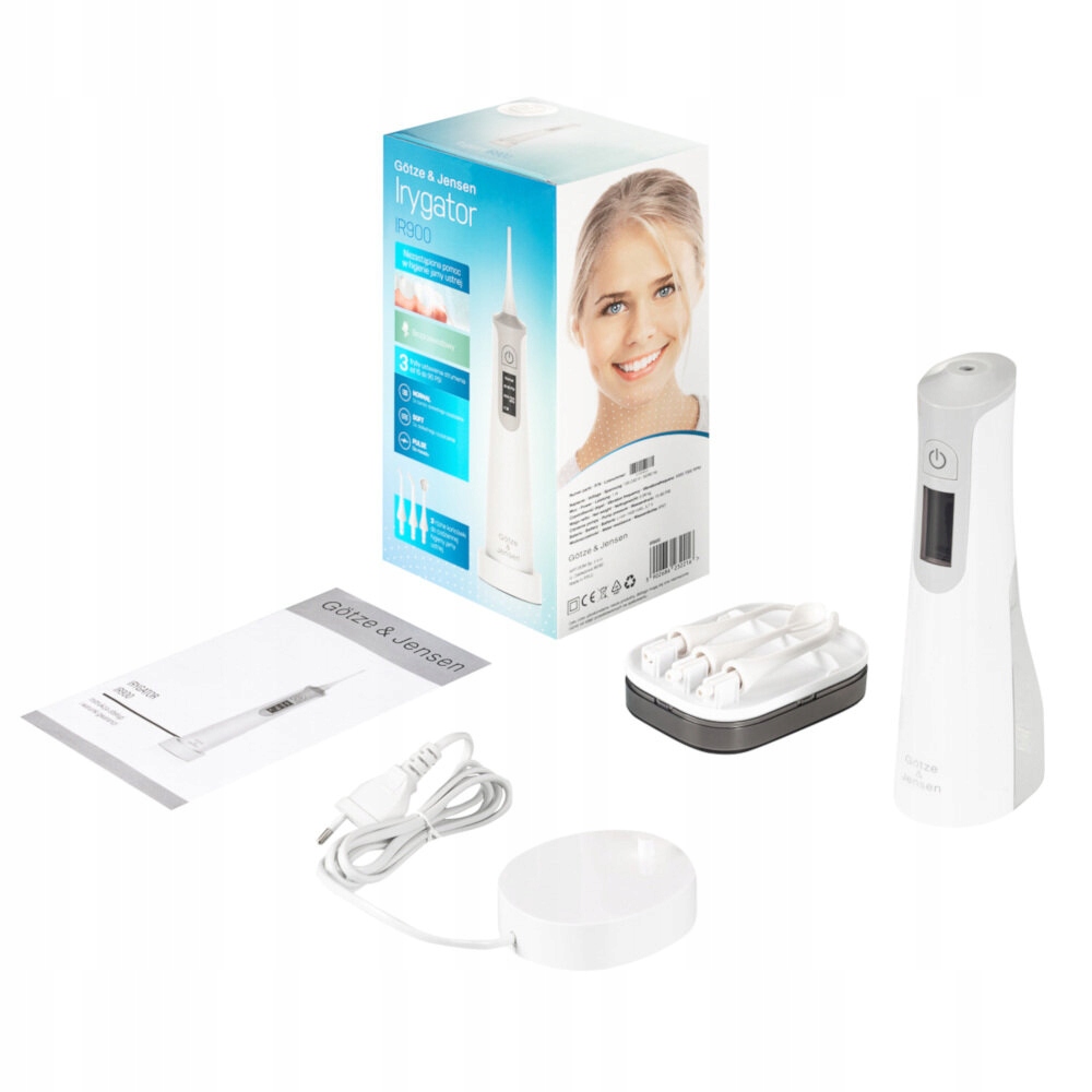 irigator Götze & Jensen IR900 - це пристрій, призначений для щоденного порожнини , тобто боротьби з шкідливими бактеріями . За допомогою водного потоку під тиском ви можете очистити його проміжки між зубами , краями зубів , ясна і навіть язик . Це чудове доповнення до традиційного чищення зубів та чудової заміни стоматологічної нитки , яка не дуже зручна і популярна у використанні.