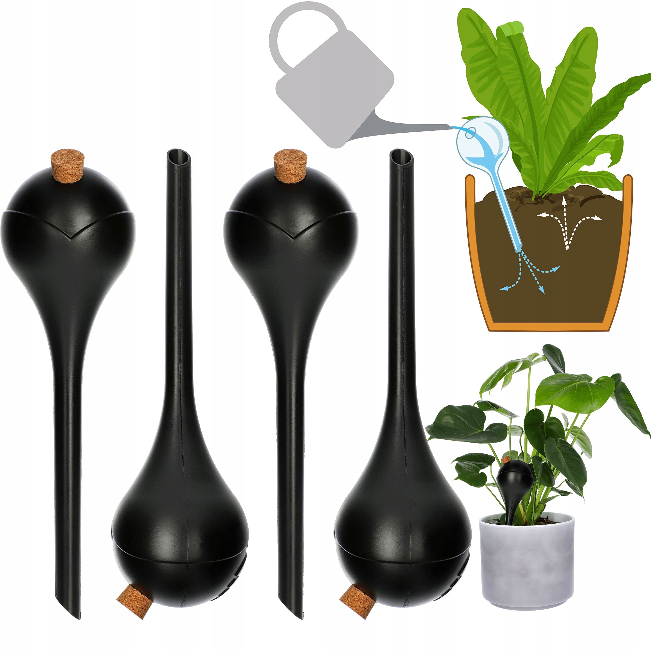 Великі поливальні кулі для рослин, чорні матові з пробкою 4 х 400 мл Browin 720920
