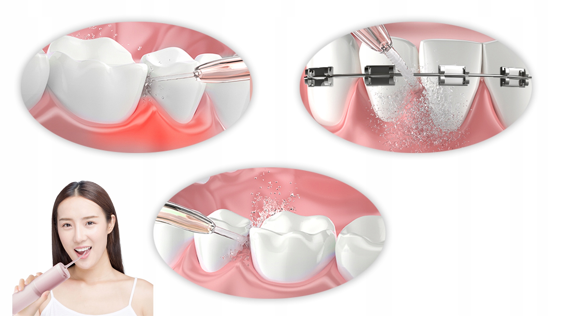 Сильний струмінь ефективно очистить ваші зуби від анаеробних бактерій з ясенних кишень і змиє залишки їжі з ротової порожнини.