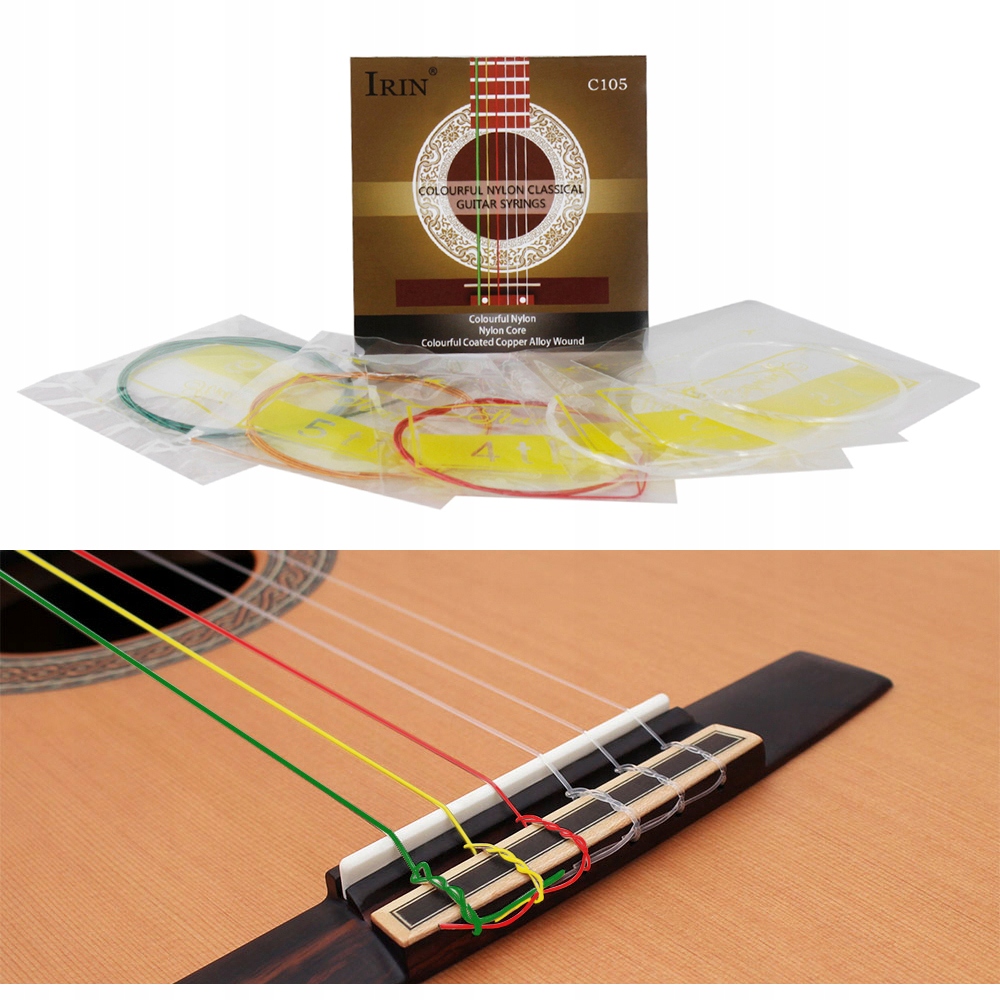 1. 6 штук/набір барвистих струн, призначених для акустичних класичних гітар. 3-частинні рядки-це прозорі нейлонові рядки, що забезпечують яскраві звуки. Ще 3 штуки з барвистим мідним сплавом, яскраві кольори - це натхнення для гри. Струни виробляються автоматичною обмоткою, а якість - StAA. Чудова заміна для класичних гітарних струн.