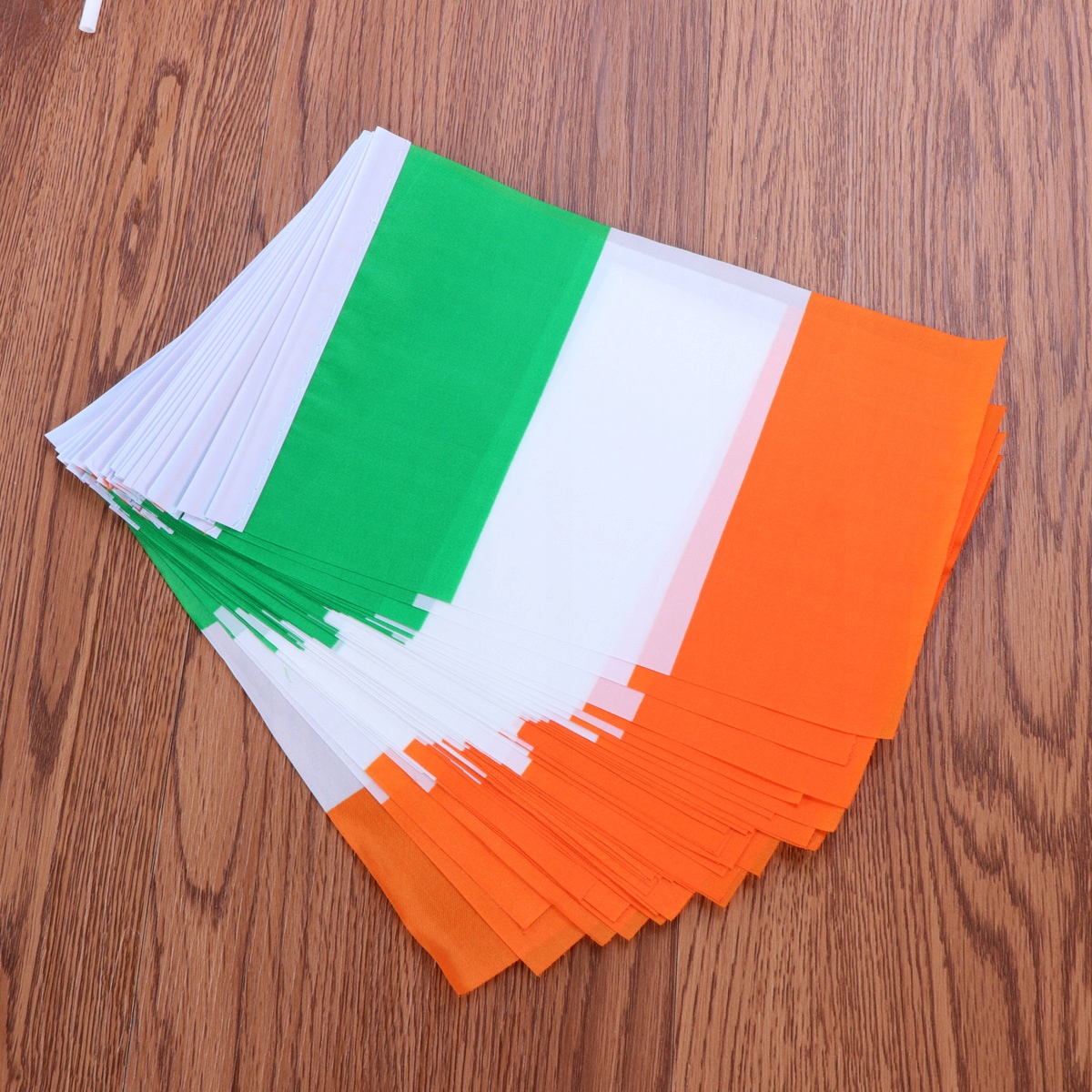 Цей продукт являє собою набір маленьких прапорців із паличками, виготовлених із високоякісного дакрону у стилі прапорця. Люди можуть використовувати цей прапор, щоб показати свою любов до Ірландії в спортивній грі. Цей продукт також ідеально підходить для вечірки, дому чи будь-якої події, яку ви хочете прикрасити.
