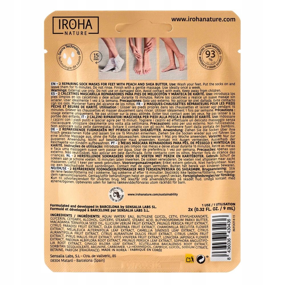 Відновлююча маска для ніг IROHA nature Repair Foot Mask у формі шкарпеток Peach & Shea Butter 2x9ml