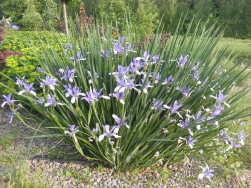 Навесні розпускаються ніжні синьо-фіолетові квіти. Ірис довгожитель, він може рости на одному місці багато років.