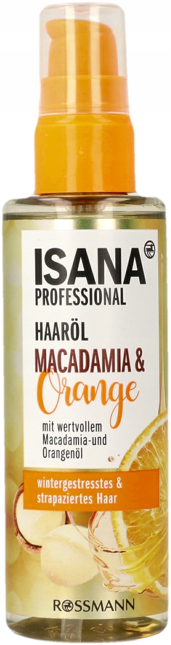 Олія для волосся ISANA PROFESSIONAL Macadamia & Orange живить волосся, не обтяжуючи його, особливо підходить для сухого та пошкодженого волосся.