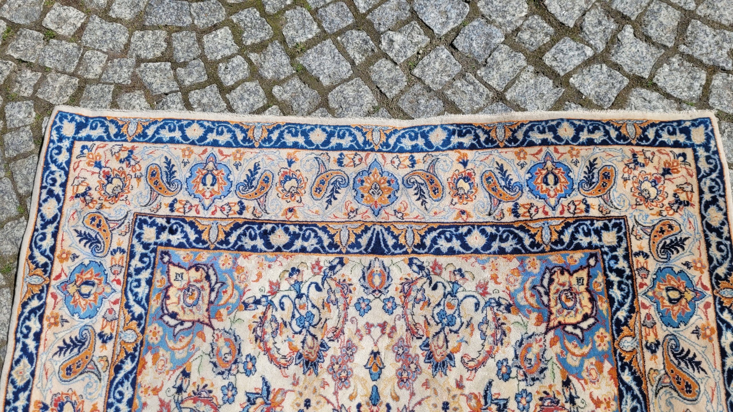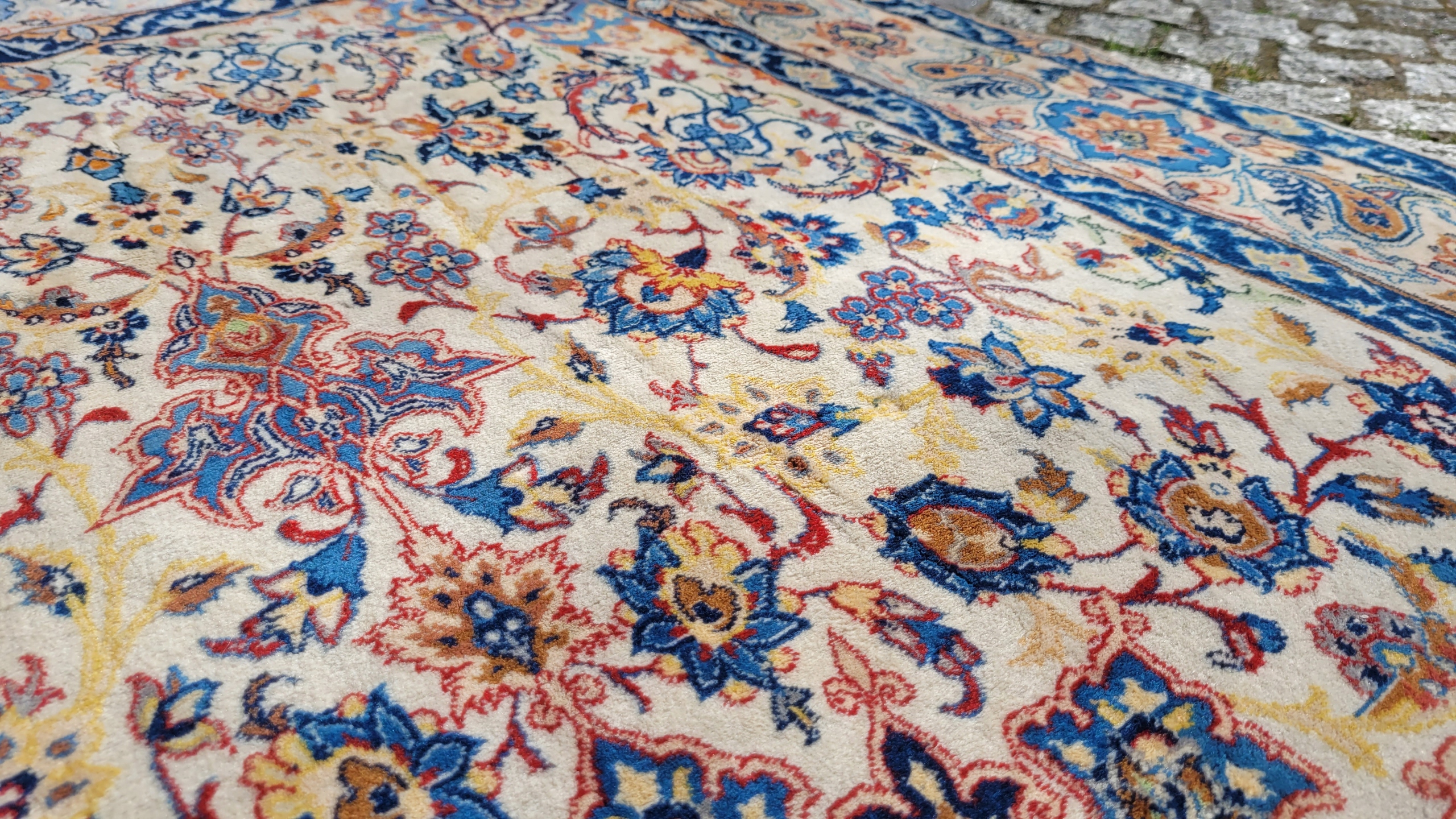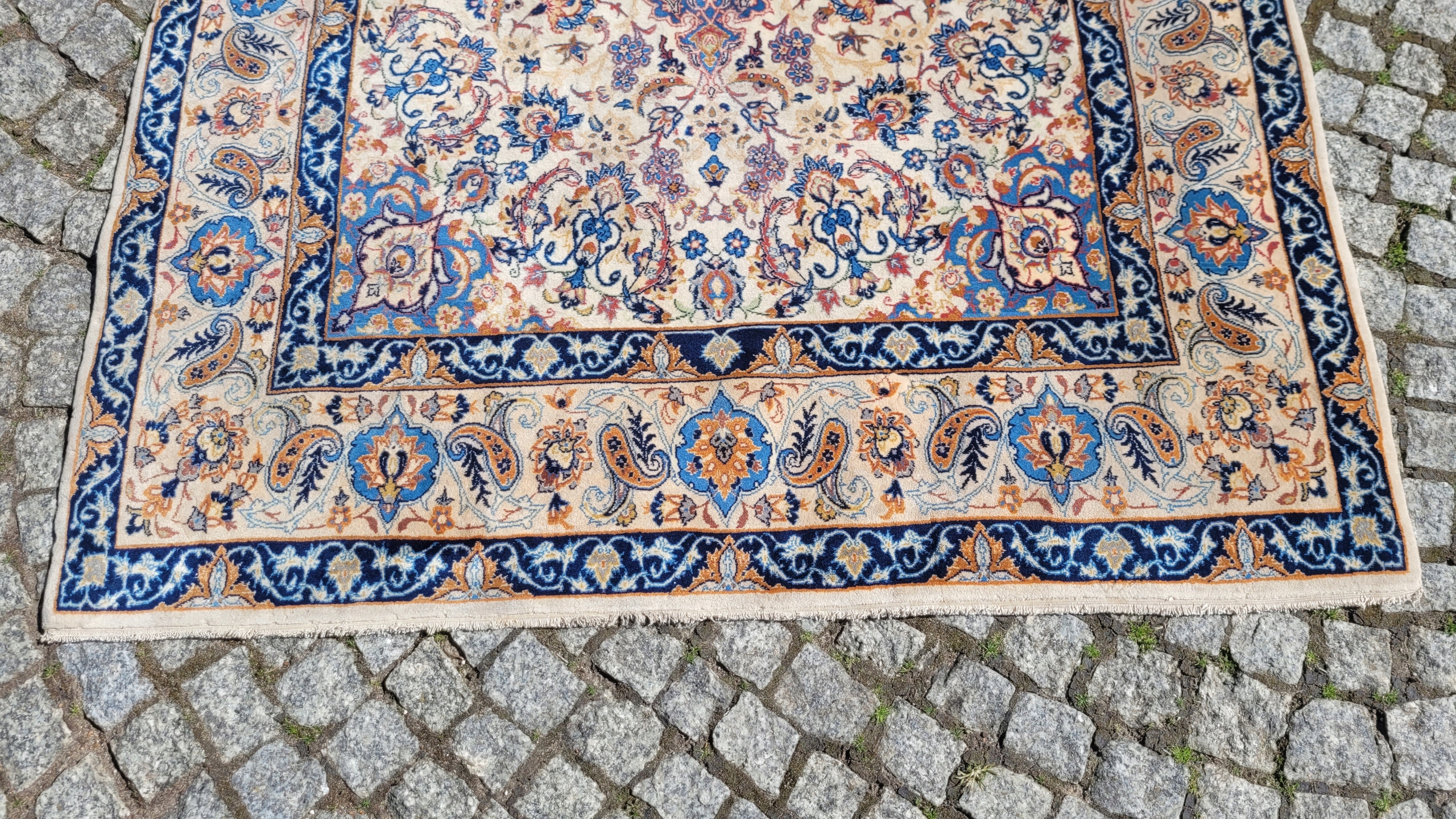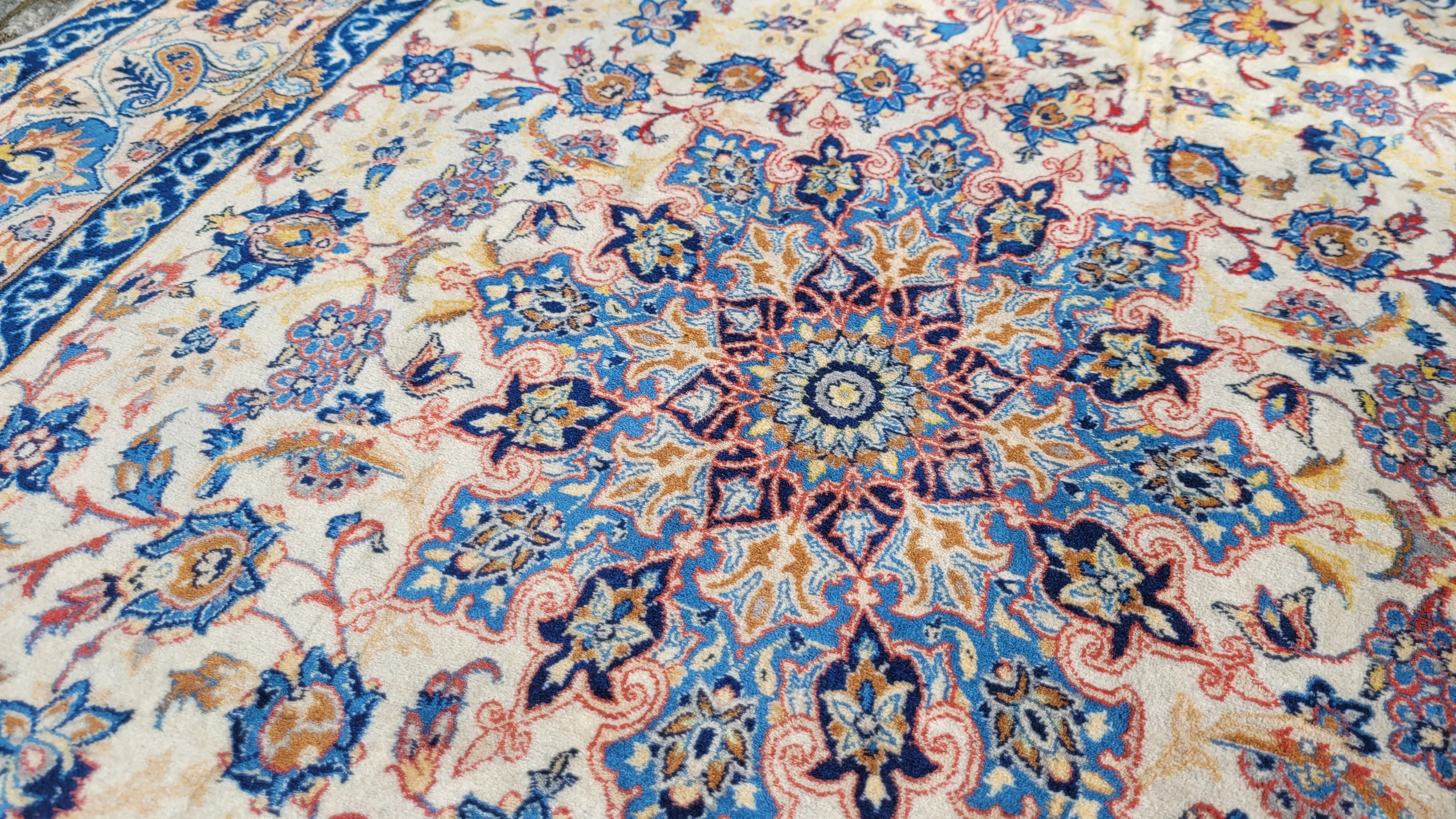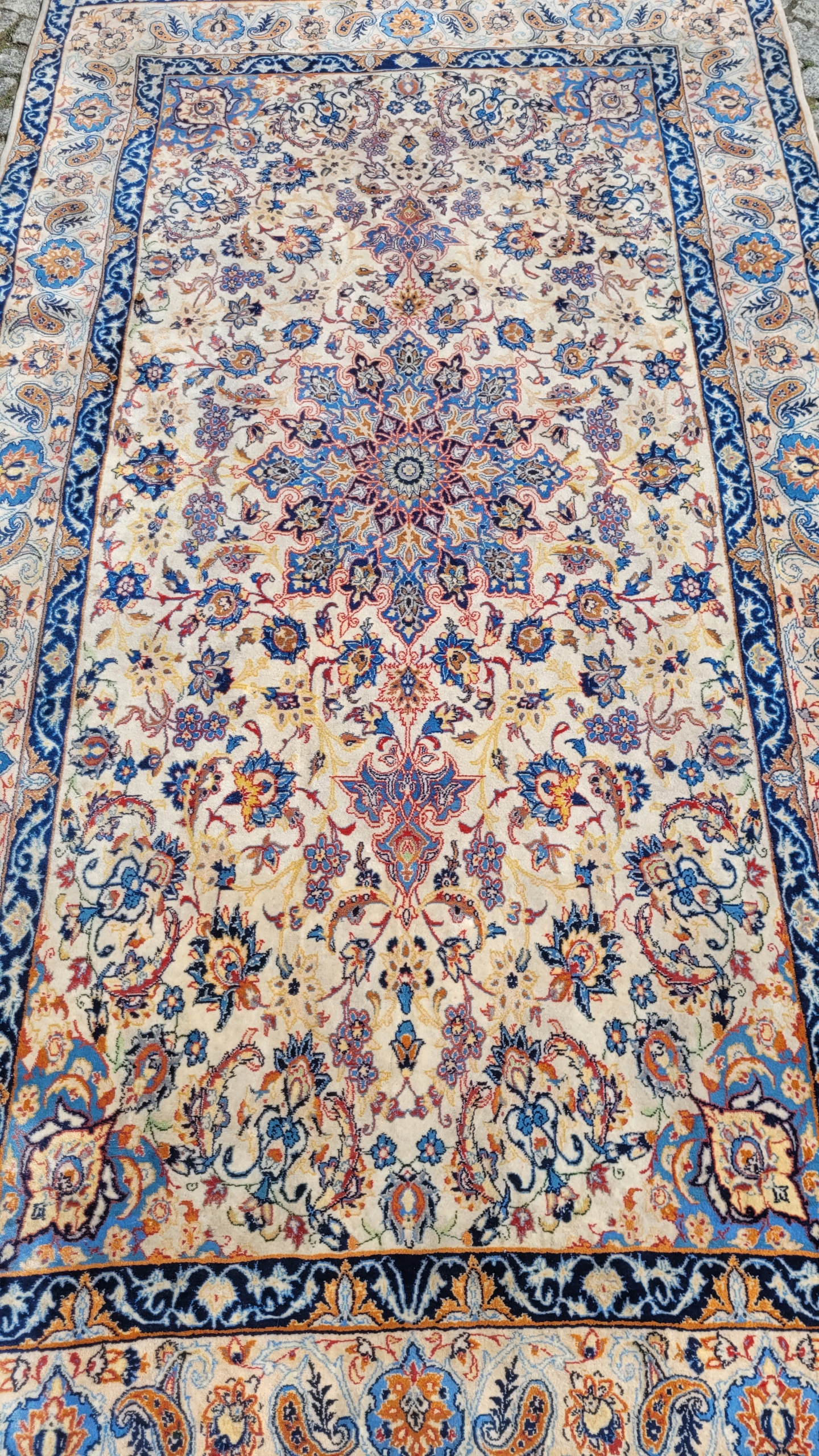 Це килим дуже високої якості, витканий у місті Ісфахан на південному заході Персії. Цей килим вважається найкращим з усіх перських килимів. Ці килими відрізняються високою щільністю плетіння, надзвичайно детальними візерунками та високою якістю матеріалів. Ісфаханські килими вважаються прикладом найвищого класу майстерності. Універсальні малюнки роблять цей килим підходящим для багатьох інтер'єрів.