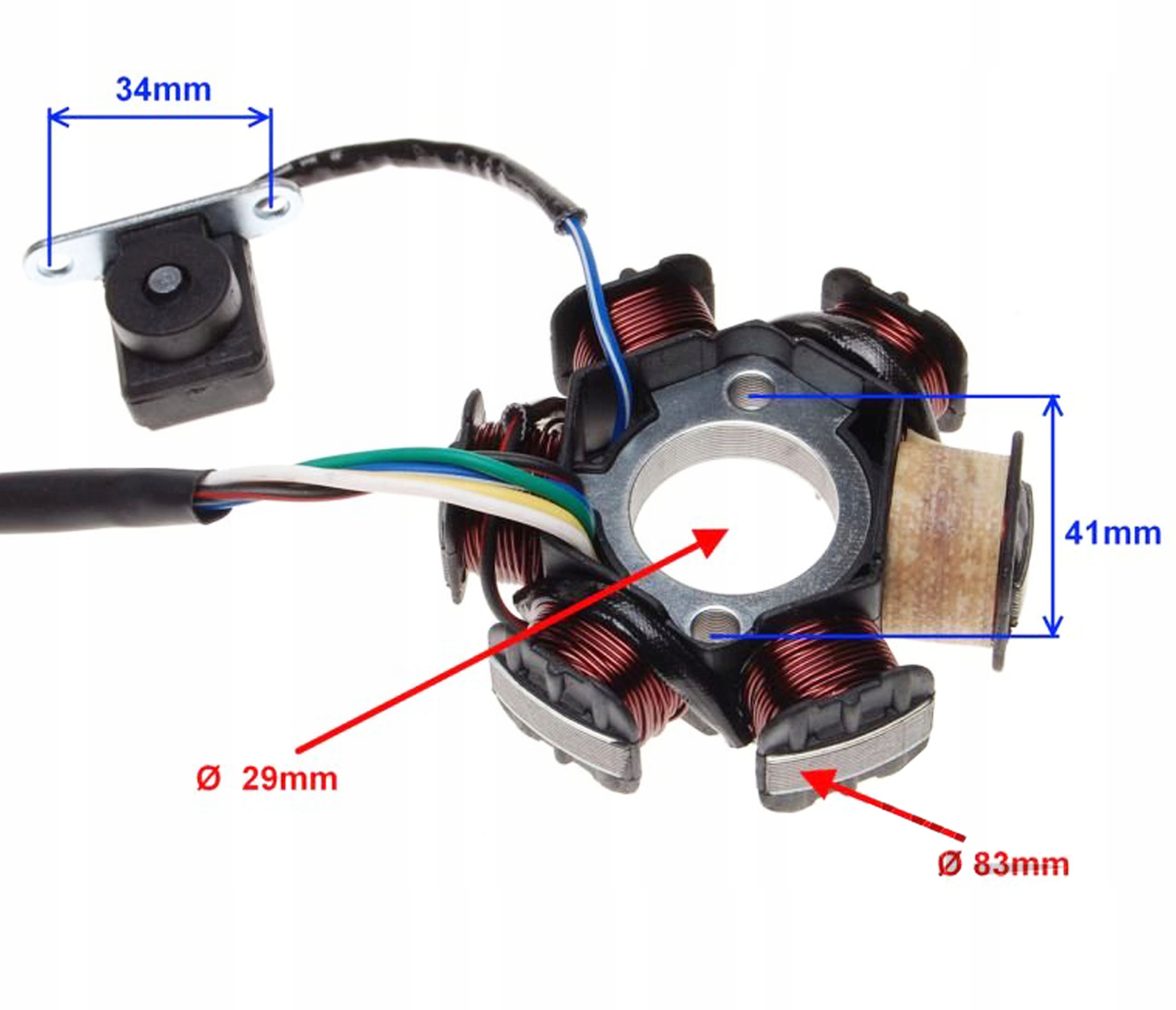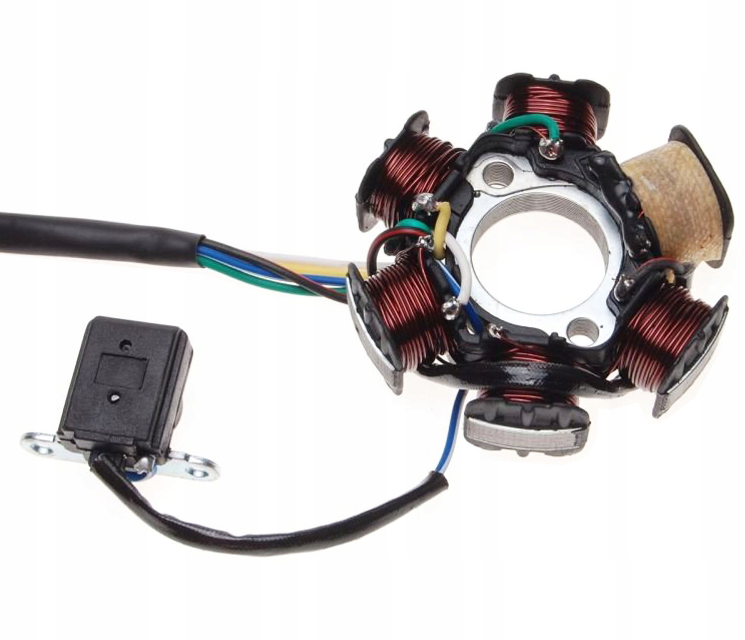ОПИС: КОМПЛЕКТ СТАТОРА ЗАПАЛЮВАННЯ, 6 КОТУШОК, 5 КАБЕЛІВ ДЛЯ ПОПУЛЯРНИХ АВТОМОБІЛІВ 4Т З ДВИГУНОМ 139 FMB 110 см3.