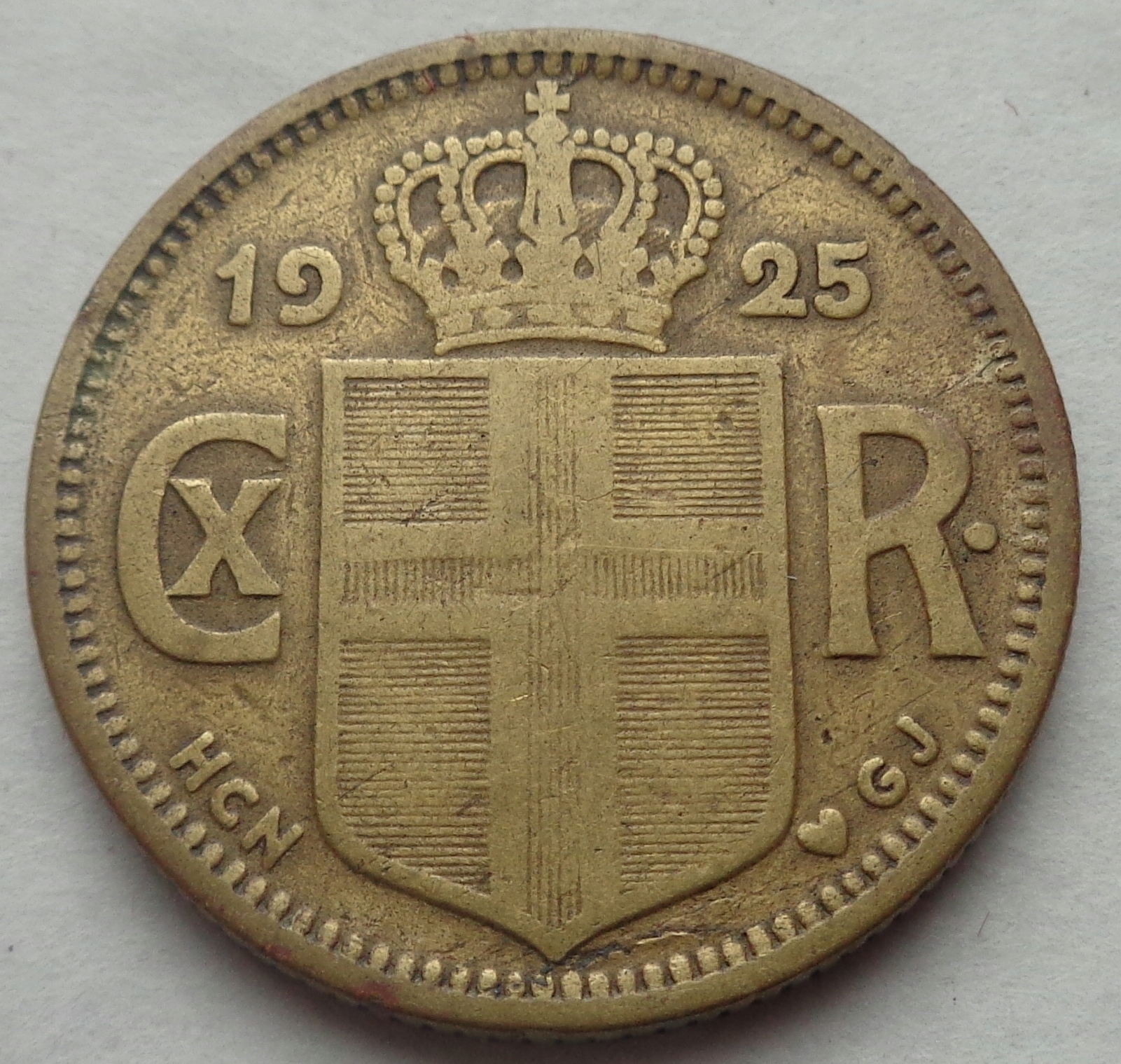 ІСЛАНДІЯ - 1 крона / крона - 1925 - Крістіан X