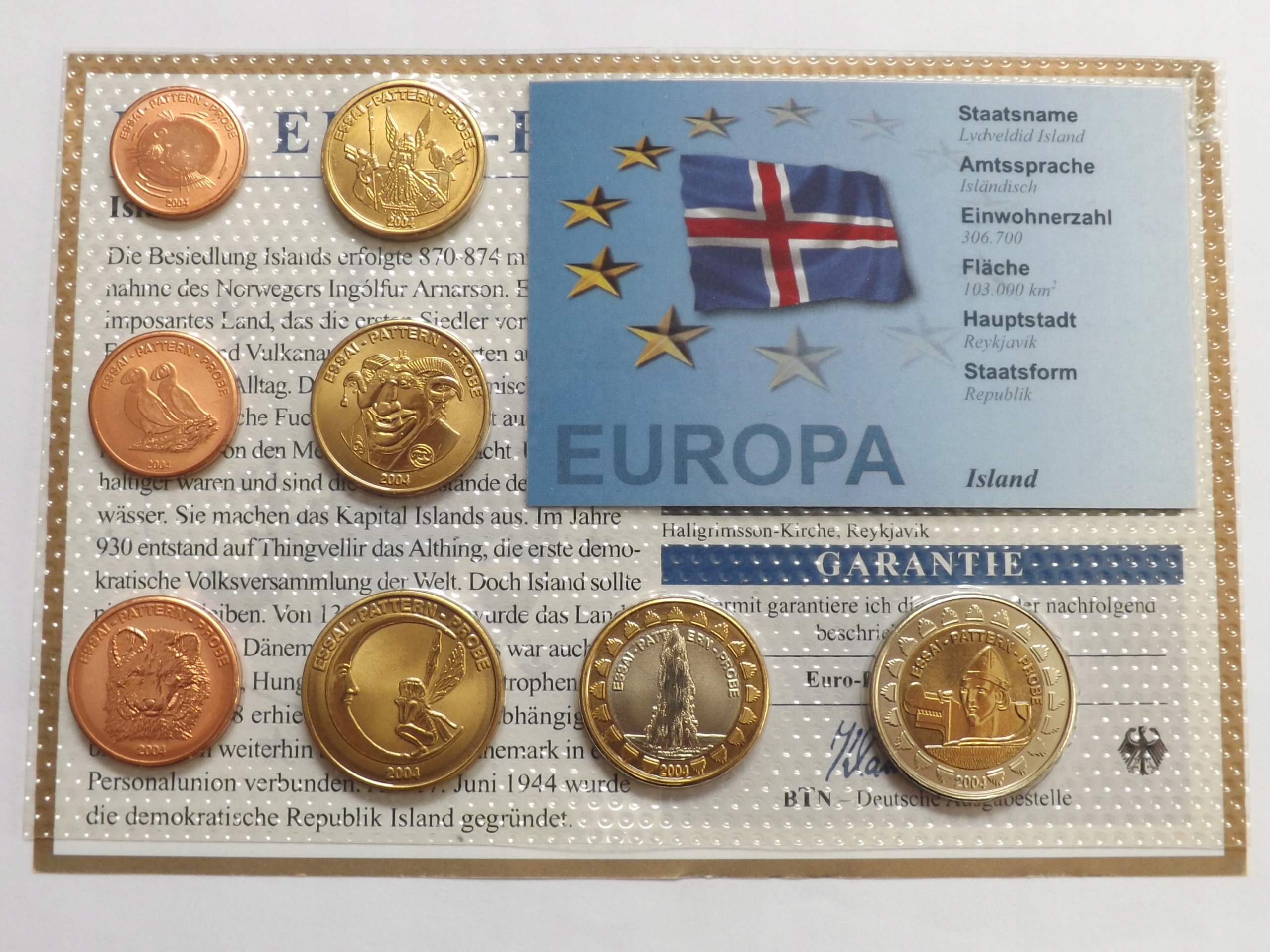 Ісландія 2004 р. Набір монет євро Proof, сертифікат 8 x UNC