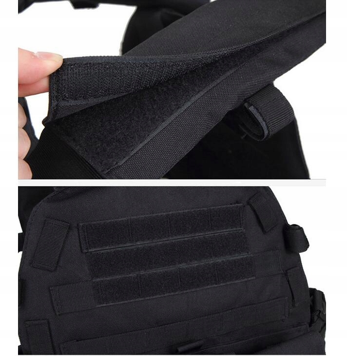 -Зовнішня частина жилета покрита модлею з модульним регулюванням, з ободом і петлею на передній кишеньковій карті та задній стрічці молле, доступної для ідентифікатора та патчів.