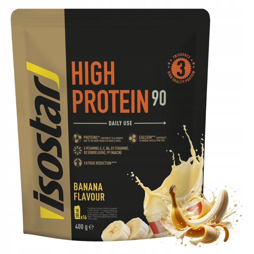 ISOSTAR High Protein 90 - це порошкоподібний напій, який забезпечує необхідну енергію, вітаміни та високу дозу білка. Його зручна порошкоподібна форма дозволяє швидко приготувати напій (з водою або молоком) і взяти його з собою на тренування в пляшці з водою або шейкері. Продукт сприяє розвитку м'язів і покращує їх роботу, а завдяки вмісту вітамінів сприяє процесам регенерації, підвищує імунітет і підтримує нервову систему. Він також містить кальцій і магній, які мають вирішальне значення для зменшення судом і належного функціонування скелетної та м’язової системи.