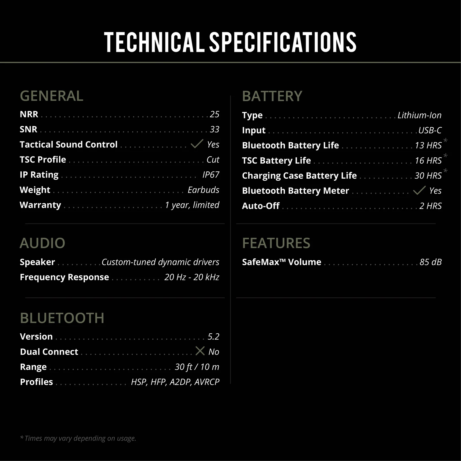 - Tactical Sound Control™ - відповідає за захист слуху та ситуаційну обізнаність