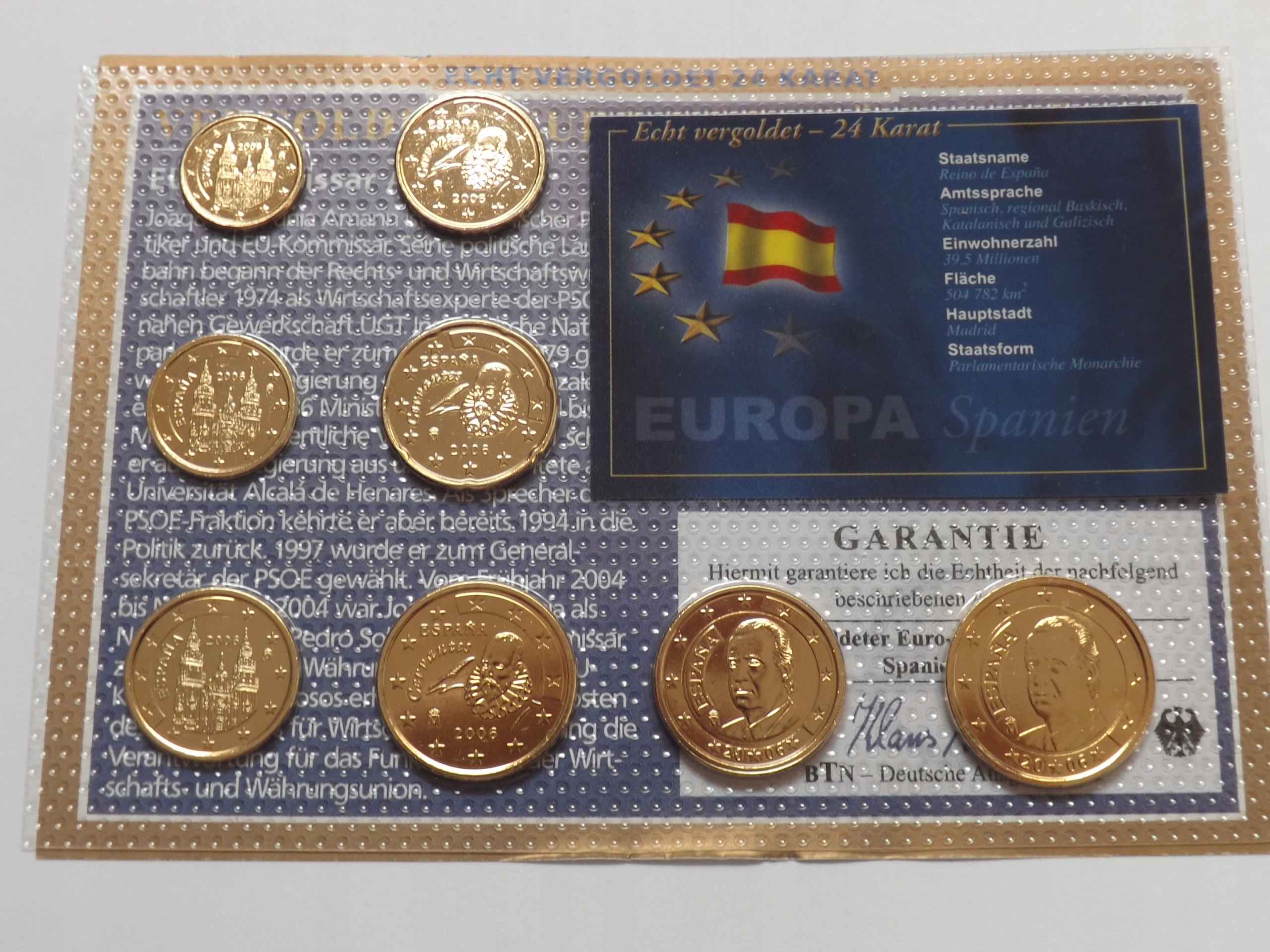 Іспанія 2006 Набір обігових монет євро, 24-каратне позолота, 8 x UNC