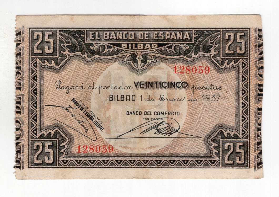 Іспанія Більбао 25 песет 1937 Banco Del Comercio