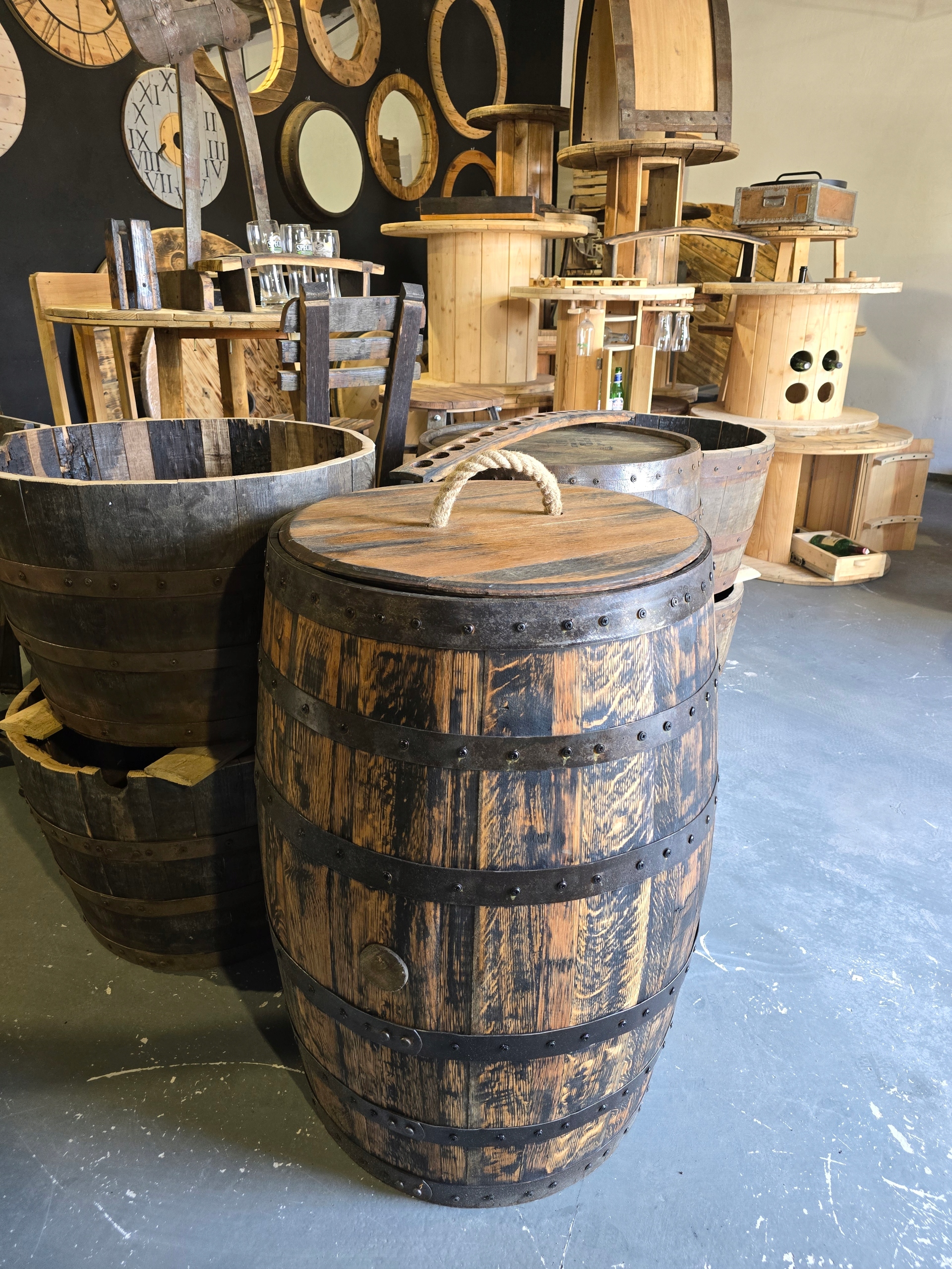 -zegars, дзеркала, столи, стільці, хокери, столи, військові коробки, бочки (200 л, 500 л) пляшки, лавки, свічники, дошки на гастрономічних пристрій.